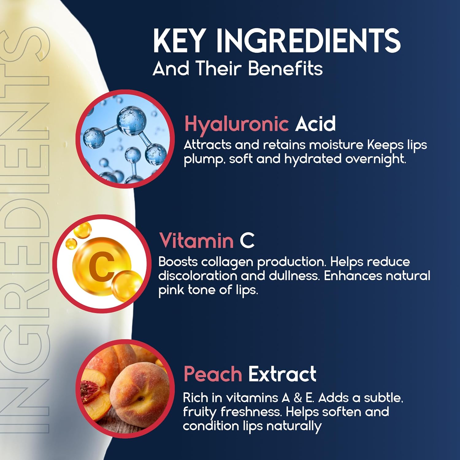 - Overnight Nourishment: Our lip mask is specially formulated to provide intense hydration and nourishment while you sleep, ensuring you wake up to deeply moisturized and rejuvenated lips. Infused with potent natural ingredients it replenishes lost moisture and repairs dry, chapped lips, leaving them feeling soft and smooth.