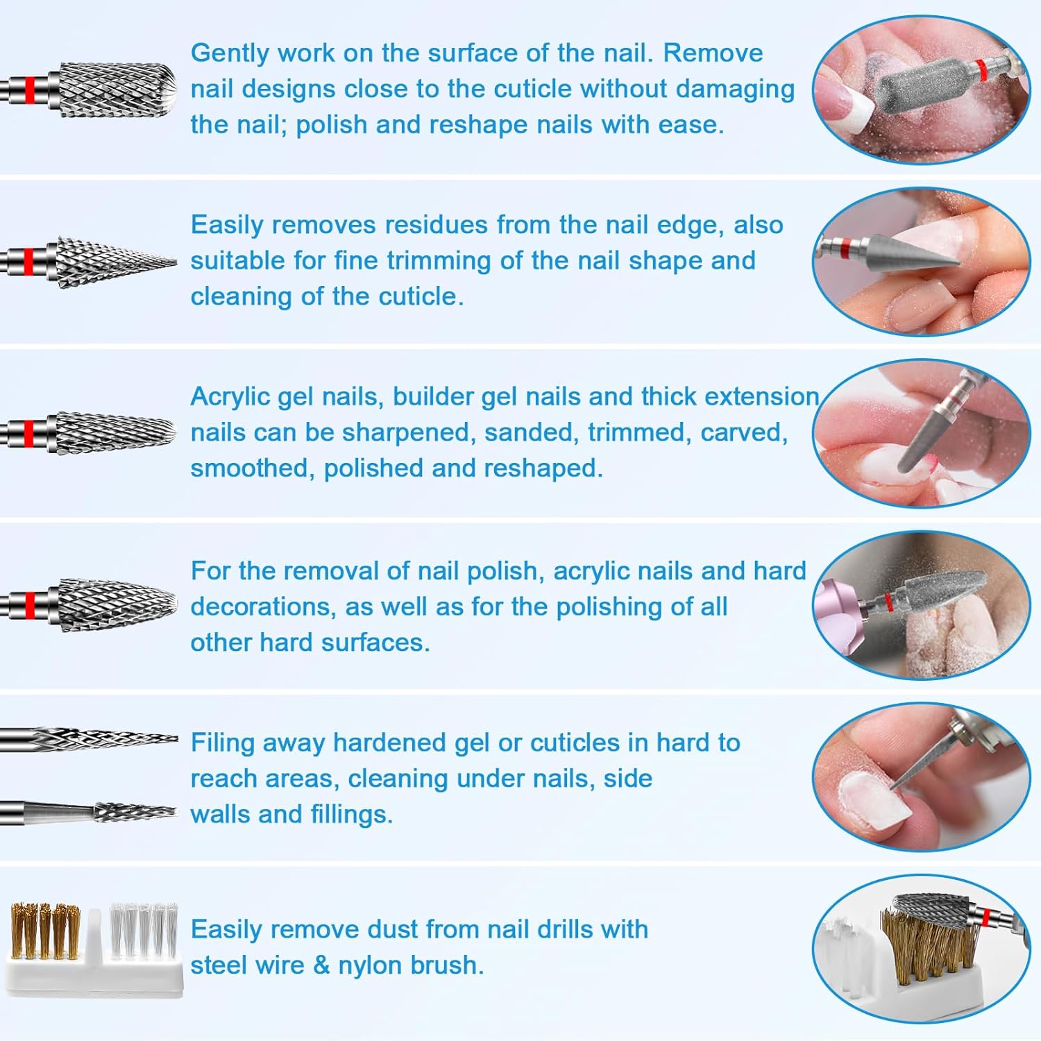 - 【Professional Cuticle Nail Drill Bits】The nail drill bits are mainly made of tungsten steel, this kind of resistant to abrasion, not easy to dull, the nails bits drill are hard and strong, so you can use it for a long time; Superior cuticle drill bit excellent heat dissipation of your skin, suitable for both natural nails and artificial nails.