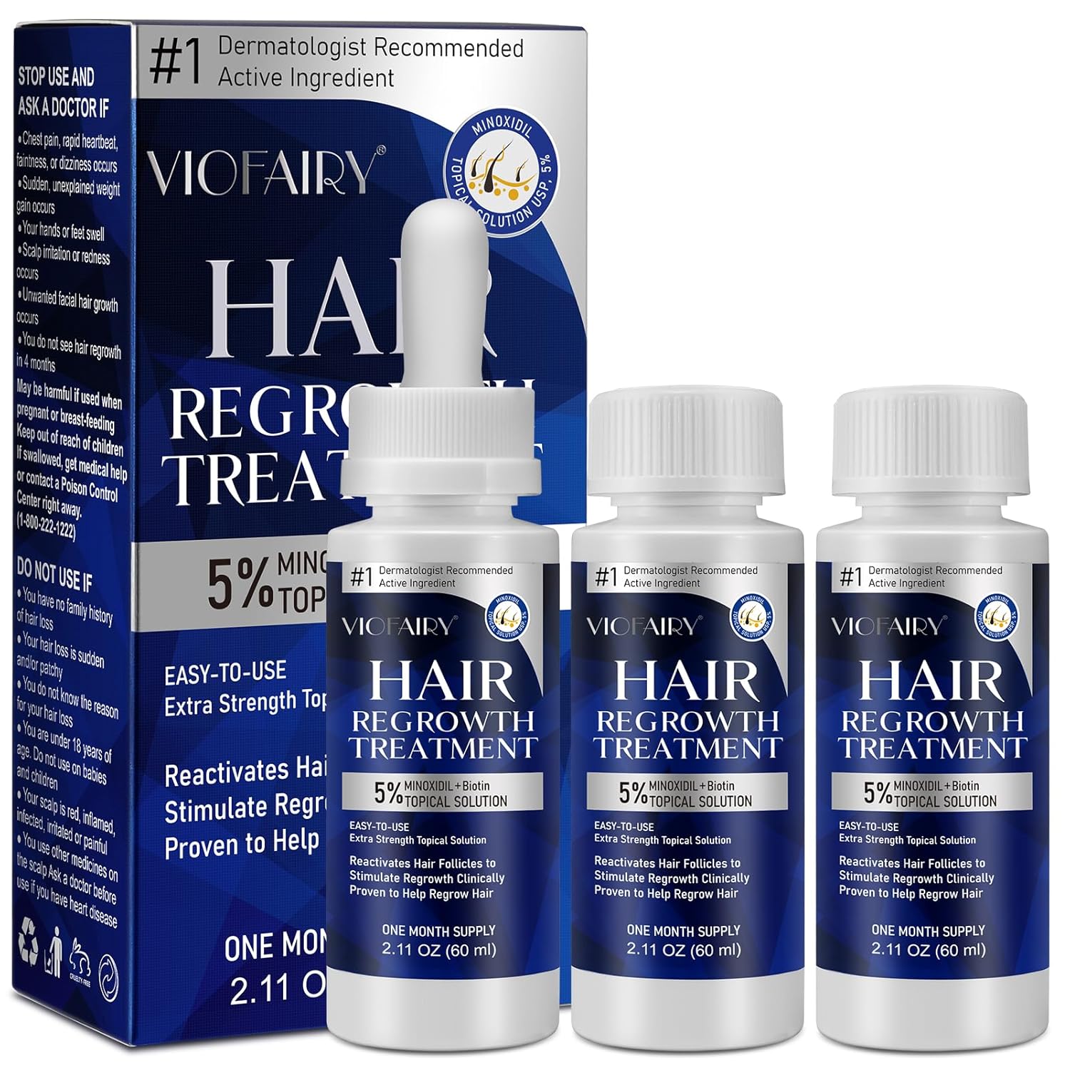 5% Minoxidil for Men and Women, Hair Regrowth Treatment for Thinning Hair and Hair Loss, Topical Solution - 3 Months Supply - Dermatologist recommended (Pack of 3)