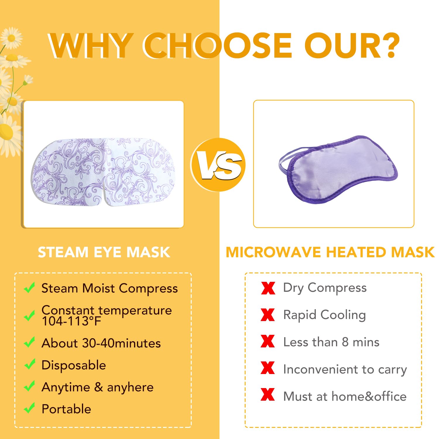 XPCARE Steam Eye Masks for Dry Eyes, Self Heated Steam Warm Eye Mask, Disposable Heated Eye Mask for Dark Circles, Puffy Eyes, Relief Stress Eye Fatigue (48PACK-Chamomile)