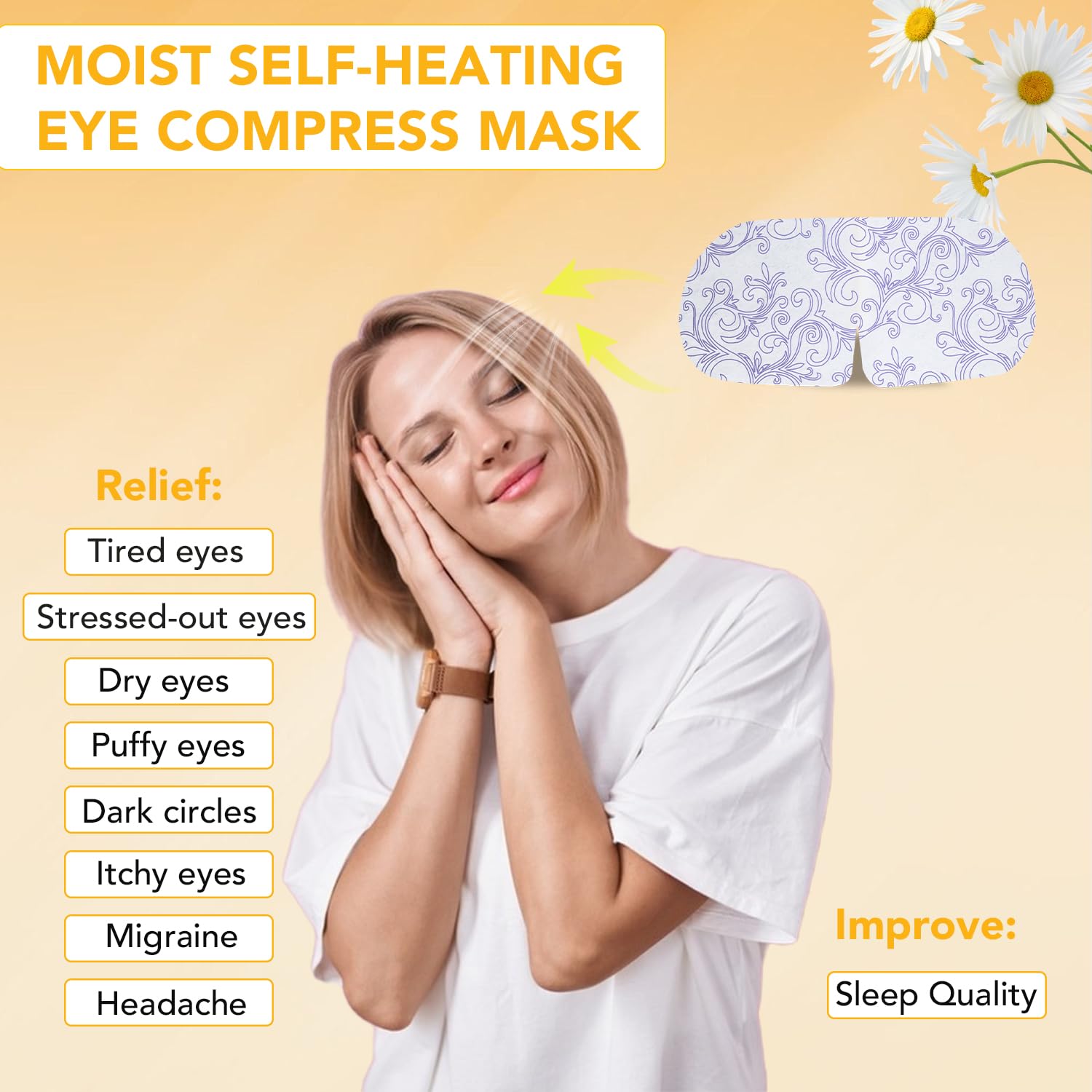 - 【Constant temperature and comfortable】The temperature of the eye mask is 104 ℉ -113 ℉ It's just slightly warmer than the human body temperature, ensuring sufficient heat effect and making sure you feel warm and moist. The constant temperature effect lasts for 20-30 minutes, allowing your eyes to fully feel warmth, effectively helping you relax and improving sleep quality.