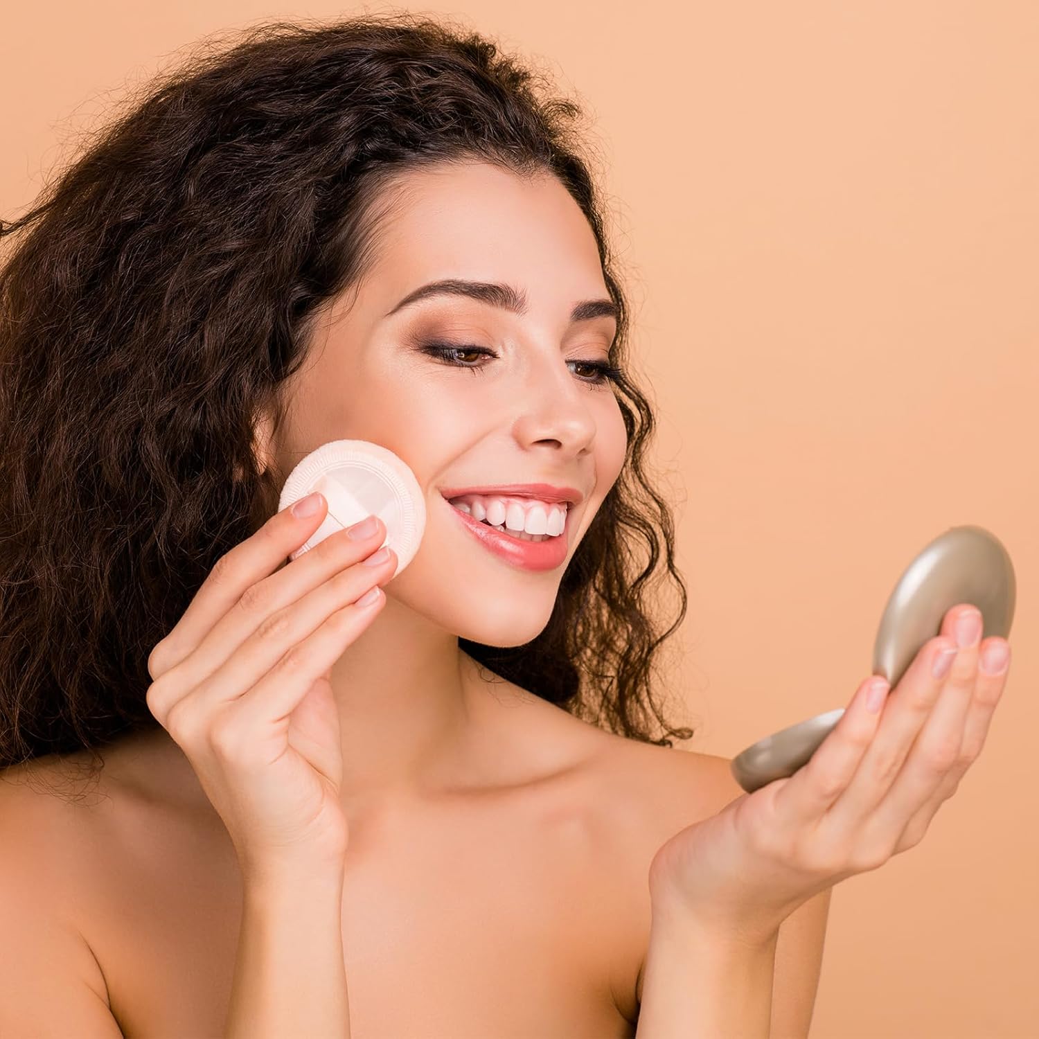 - Package includes totally 12 pieces round makeup puffs, each makeup pads packed individually by plastic bag, enough for you to change for daily uses; Color: beige