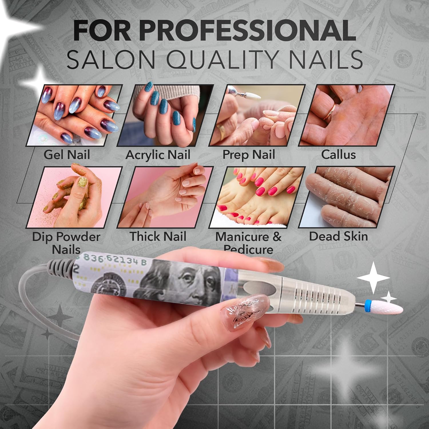 M Max - Nail Drill Professional - 2-in-1 Brushless Motor Nails Drill Machine - Electric, Cordless, Aluminium Alloy Casing, 35000 RPM, HD Display - Perfect for Salon & Home Use Special Edition - Money