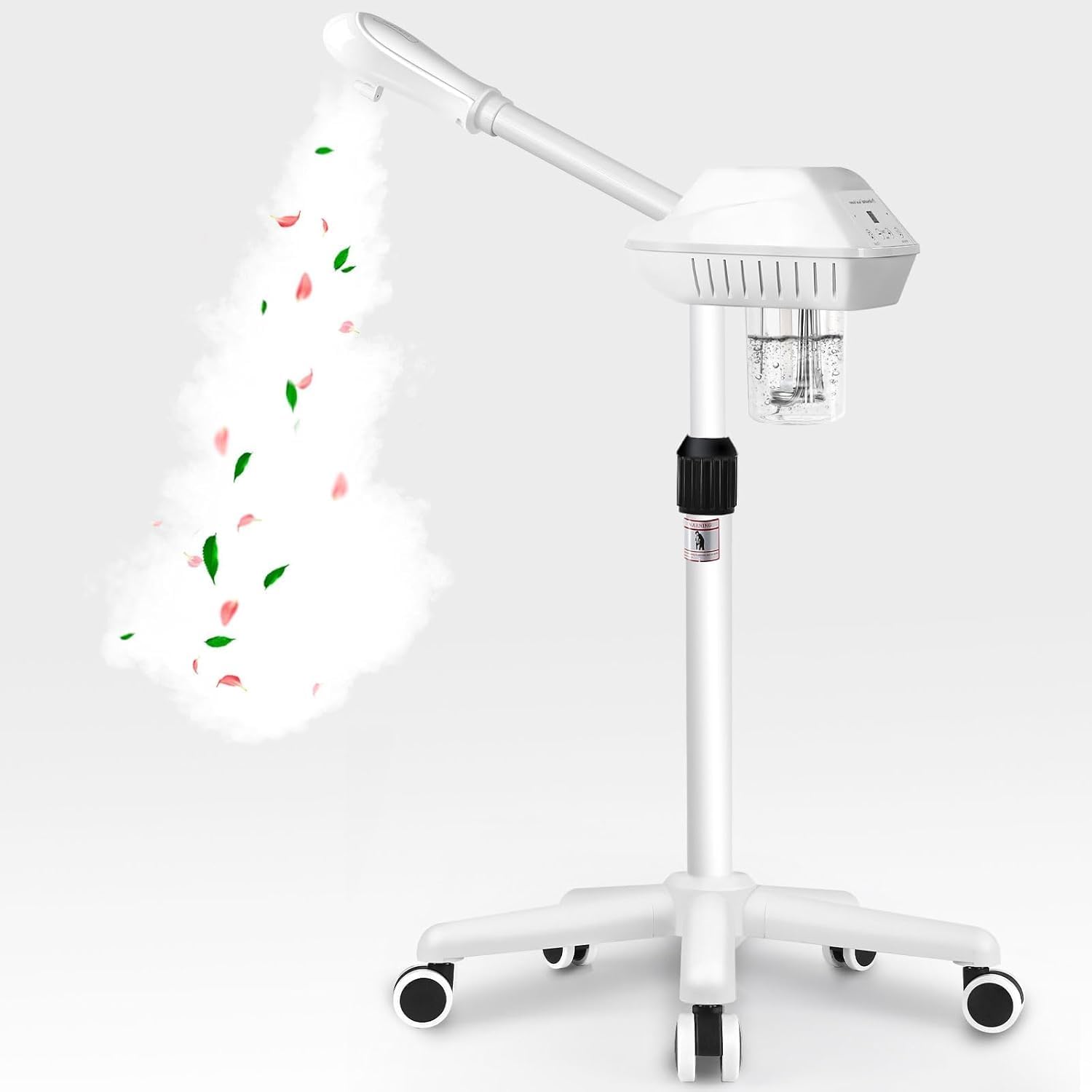 - 【Facial steamer on wheels】Solid and long-lasting base, 360° wheels make it moves smoothly, easy to install and remove. Working quietly.