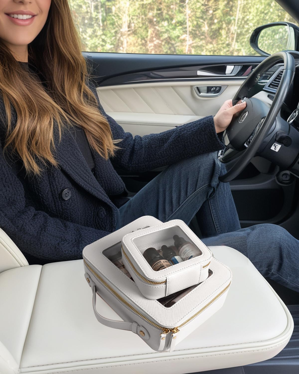 - Car Must Have Essential: The car organizer is roomy to store your makeup, makeup brushes, lipstick, cosmetics, foundation, skin care, cables, chargersor and other items. It can be a good car accessory fits in the center console or other parts of your car