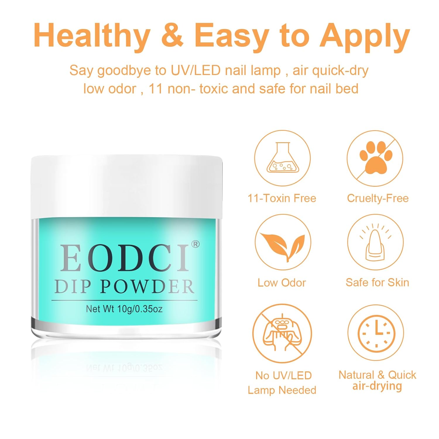 - 【No Lamp Needed】Eodci Nail Dipping Powder does not require UV/LED light to cure, is skin friendly while avoiding skin darkening and damage, safe and easy to use, suitable for beginners and professional nail salons.