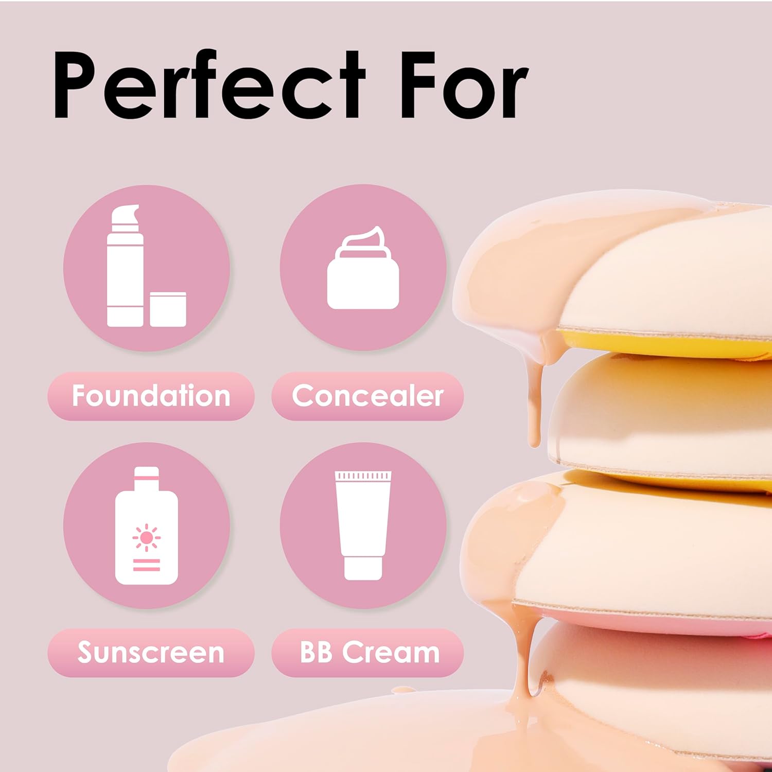 - Versatile: Makeup Sponges Can Be Used With A Variety Of Products, Including Liquid Foundation, Concealer, Cream Blush, And Powder. Their Soft, Flexible Texture Allows For Seamless Blending And Coverage