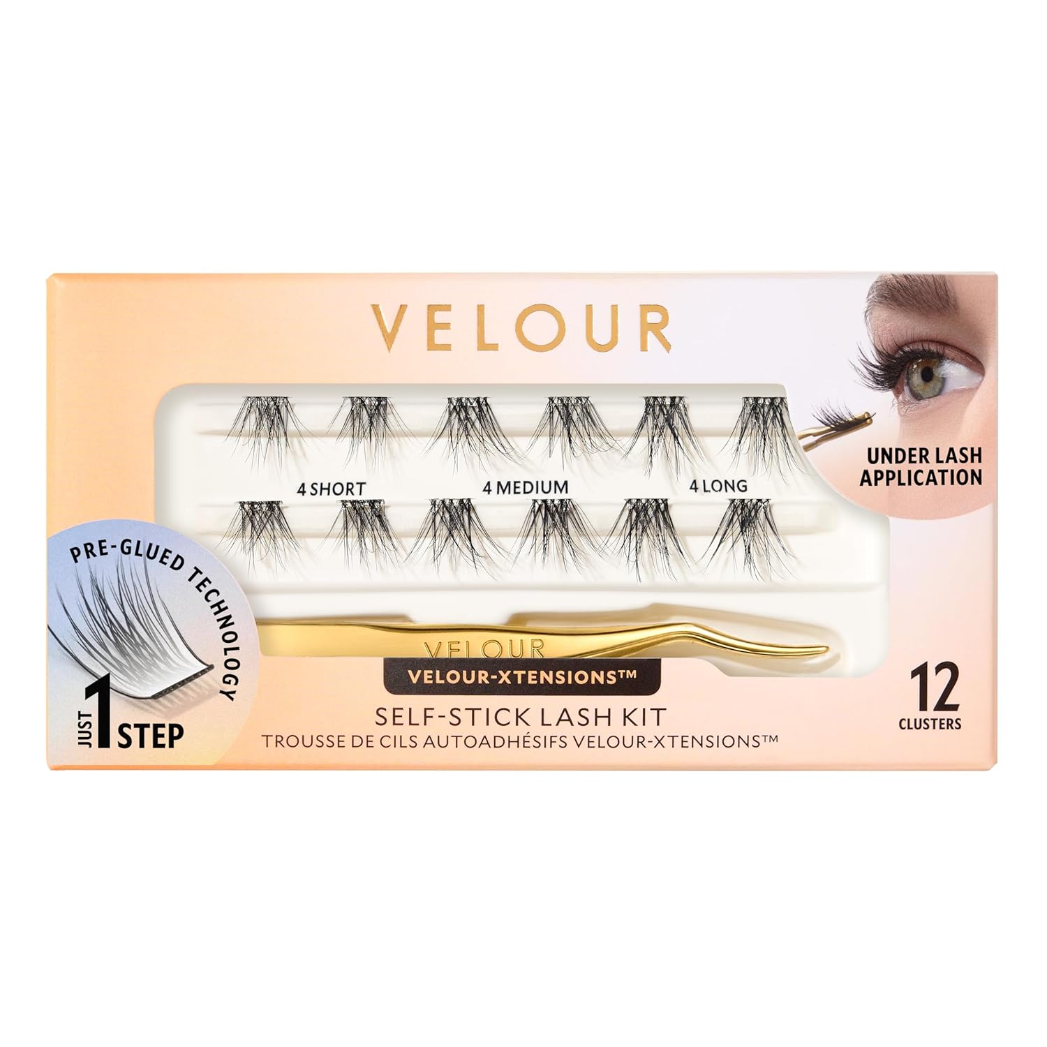 - VALUE CLUSTER EYELASH EXTENSIONS - This pack includes 12x Everyday Natural Velour-Xtensions Self-Stick Lash Clusters: 4x Short (10mm), 4x Medium (12mm), 4x Long (14mm).