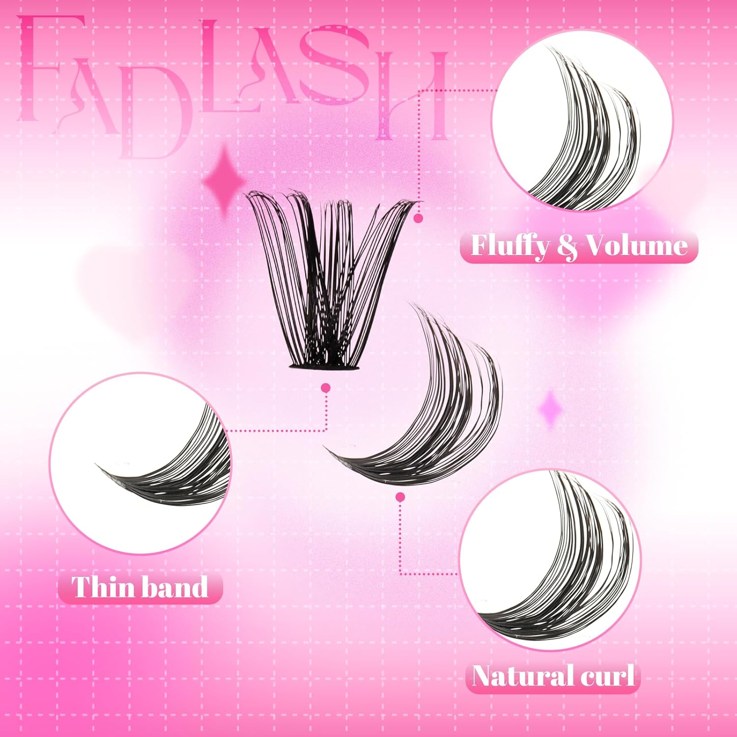 - Natural Lash Clusters: These soft cluster lashes with mixed length in one tray are convenient for you to use. Different lash styles can be created by yourself with our lash extensions clusters!