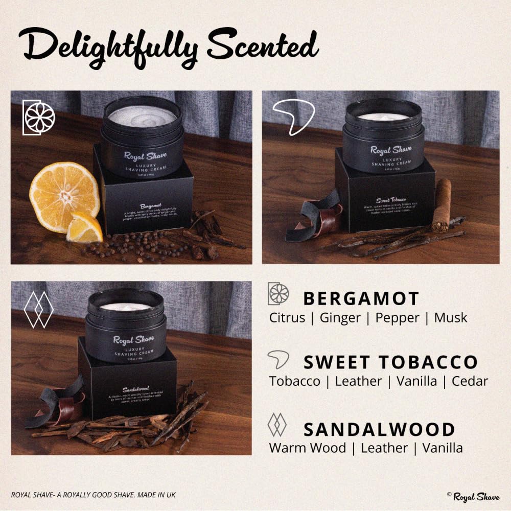 Luxury Shaving Cream for Men by Royal Shave, Rich, Soothing, Moisturizing, Hydrating & Nourishing Cream for Smooth, Close Shave (Made in UK) Sweet Tobacco