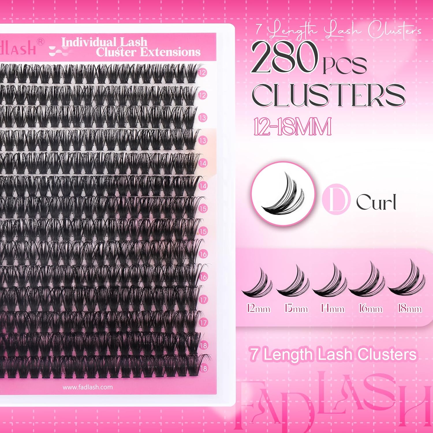 FADLASH Cluster Lashes D Curl Wispy Individual Lashes DIY Eyelash Extension Natural Look Reusable Fluffy Cluster Eyelash Extensions Self Application At Home (60D-0.07D-12-18MIX)