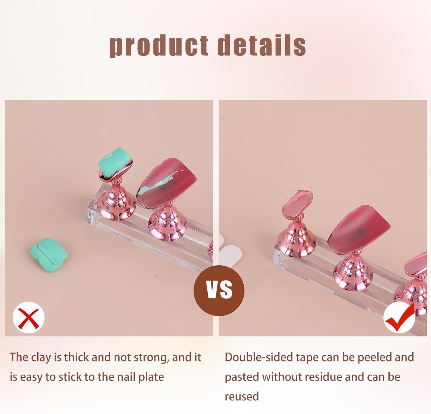 - Easy to Use: The double sided tape is easy to use, directly stick the false nail tips on the nail display stand, no other tools are required.