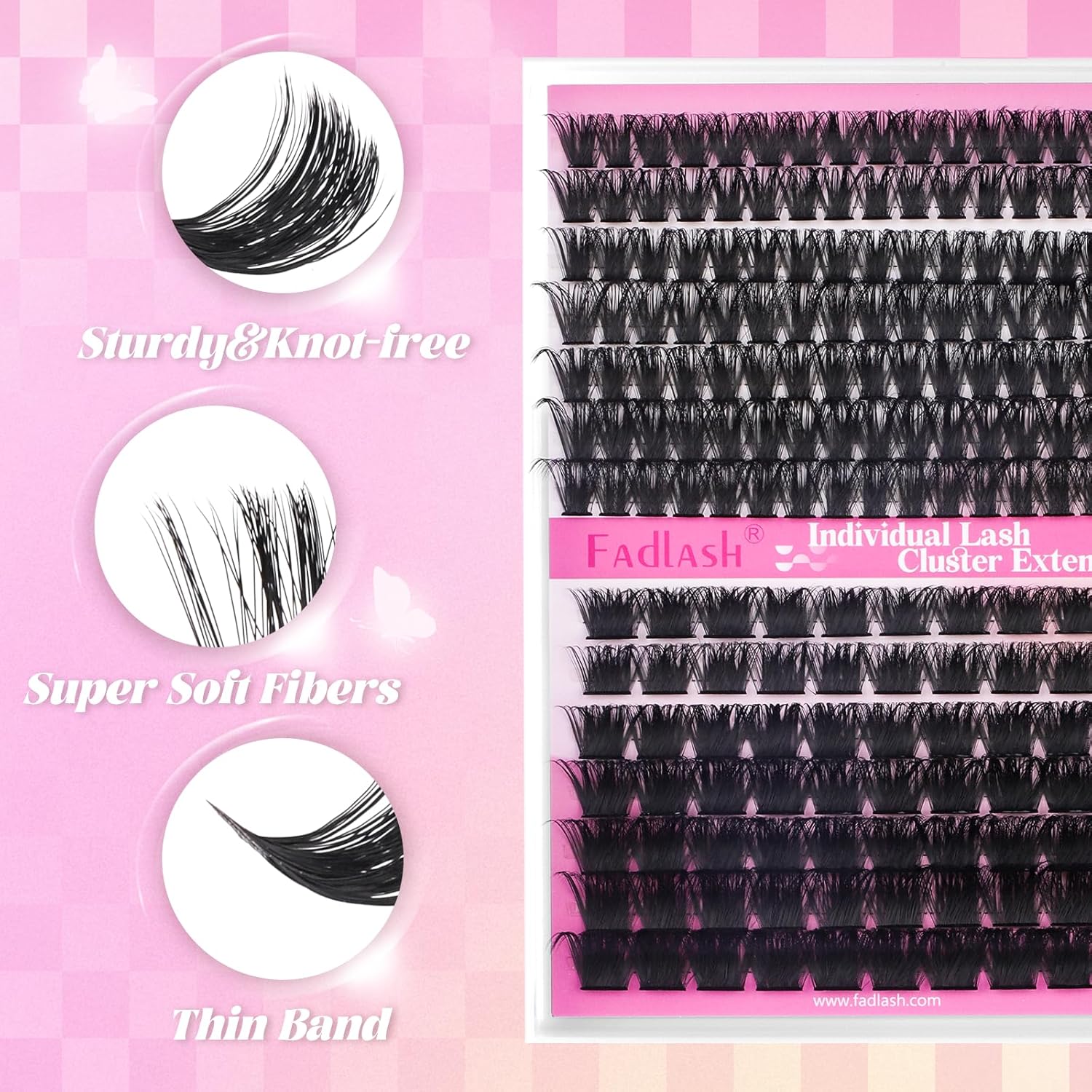 - 【High Quality Lashes】:Cluster lashes are made of premium PBT silk fiber, which is light and soft without knots, Easy to pick up and comfortable to wear, comfortable and light to wear, fast wear to save time,easily create any eyelash extension style of your makeup suitable for any scene.