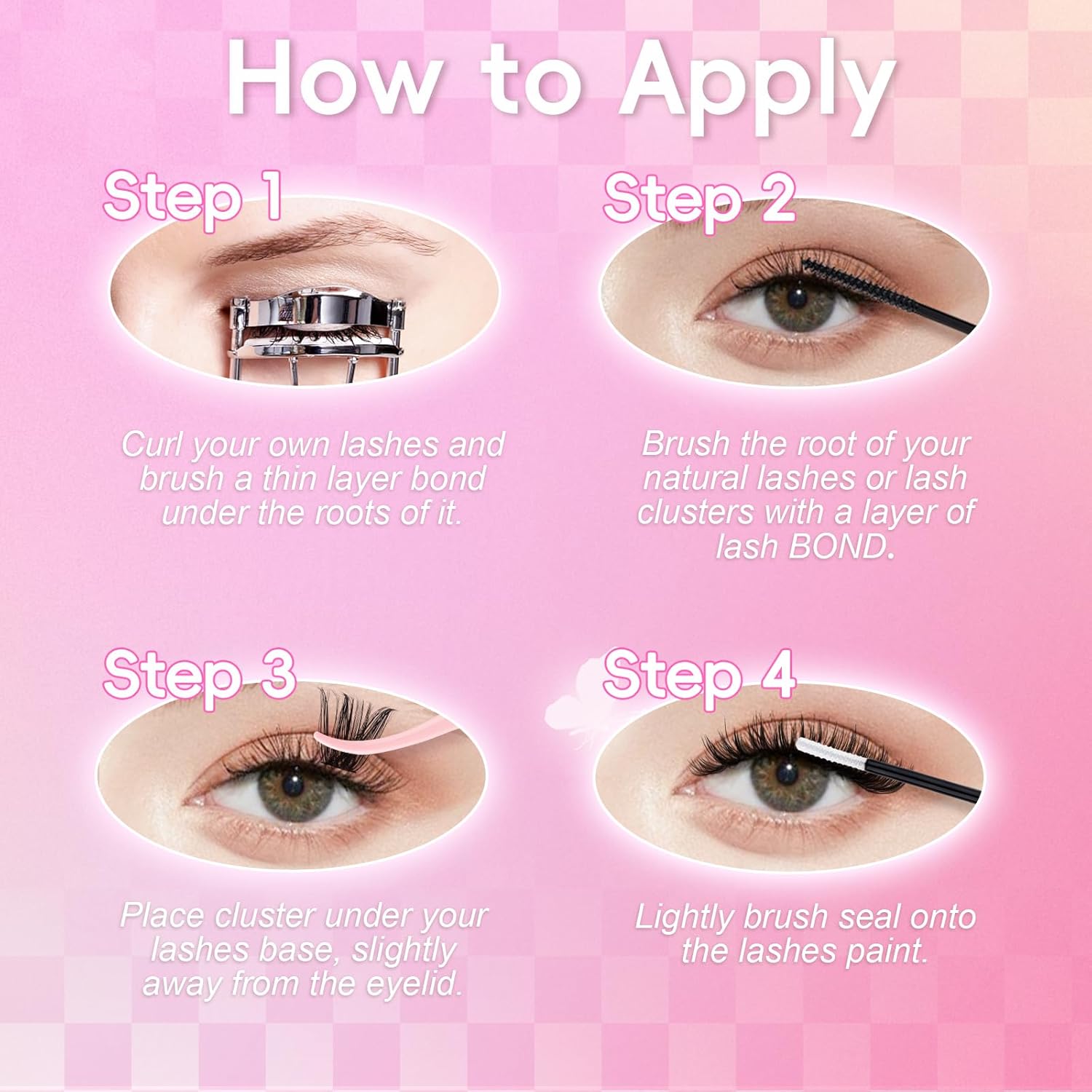 - 【DIY lash extension Kit】:DIY lash extension kit includes:1 tray mix length cluster lashes,1 lash bond and seal(2 in 1),1 Cluster Lashes Glue Remover1 lash applicator tweezer. Our DIY lashes kit includes all the necessary tools. Achieving the perfect extension look with our DIY eyelash extension kit