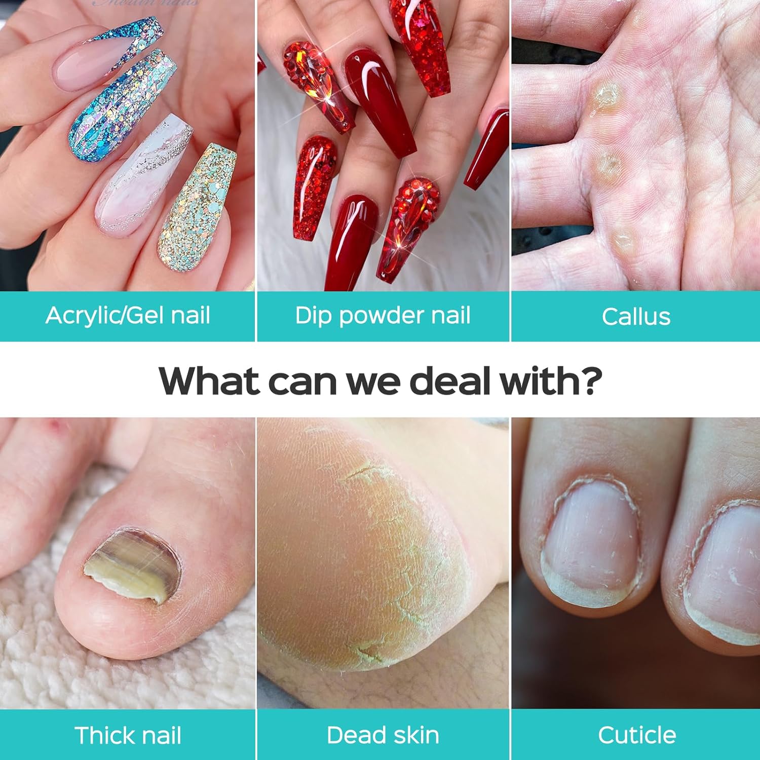 - Ergonomic Design and Portable: This portable professional nail drill adopts ergonomic design, which is more comfortable to use and easy to grip, allowing you to easily achieve DIY nail care. The lightweight design of 0.17lb is easy to carry, allowing you to enjoy salon-like quality anytime, anywhere