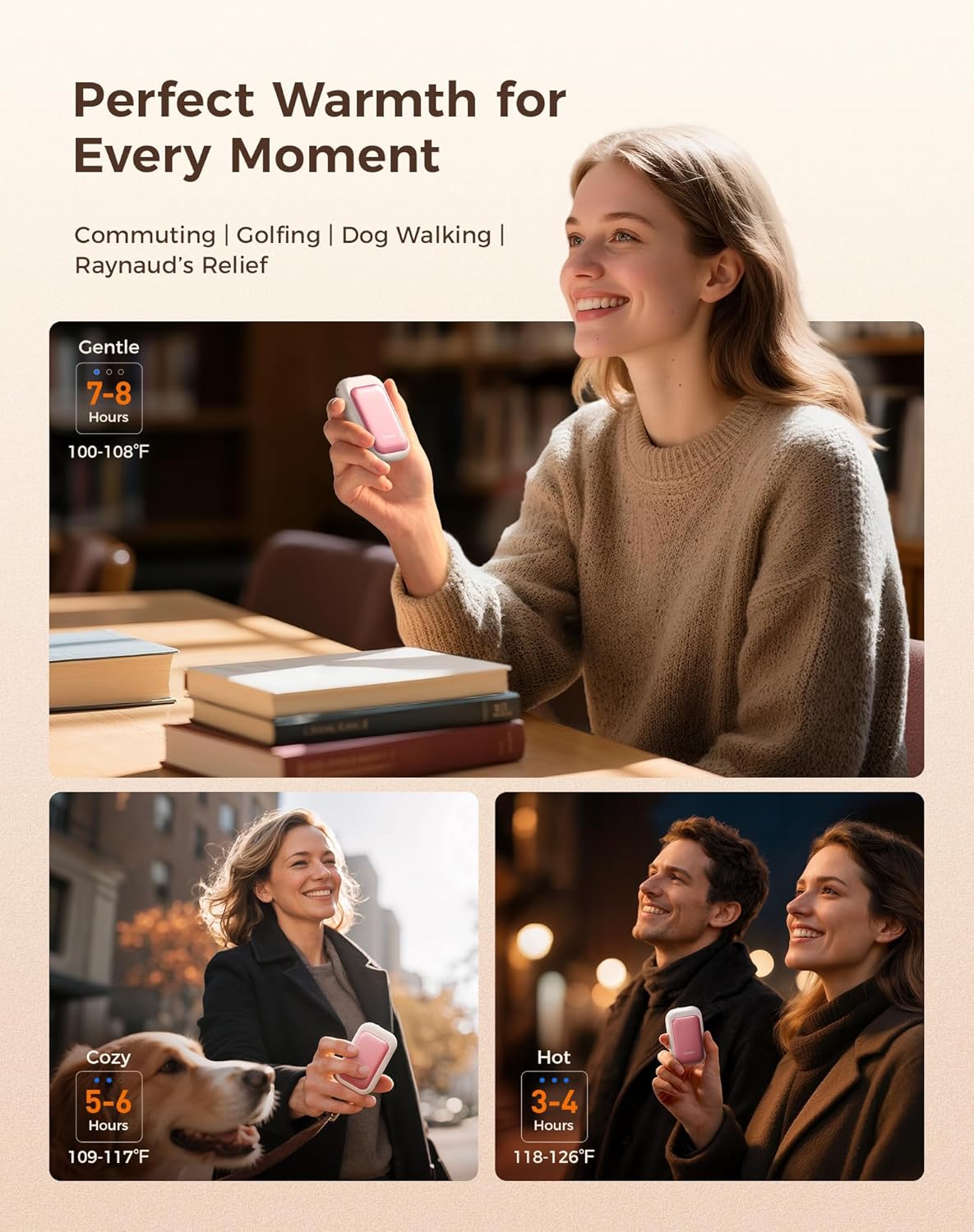 - Instant Heat, Lasting Warmth: Unlike disposable hand warmers, it is a rechargeable and reusable hand warmer. This USB hand heater offers up to 8 hours of continuous heat on the lowest setting, with three adjustable temperature levels ranging from 100Β°F to 126Β°F, providing personalized warmth for you all day long