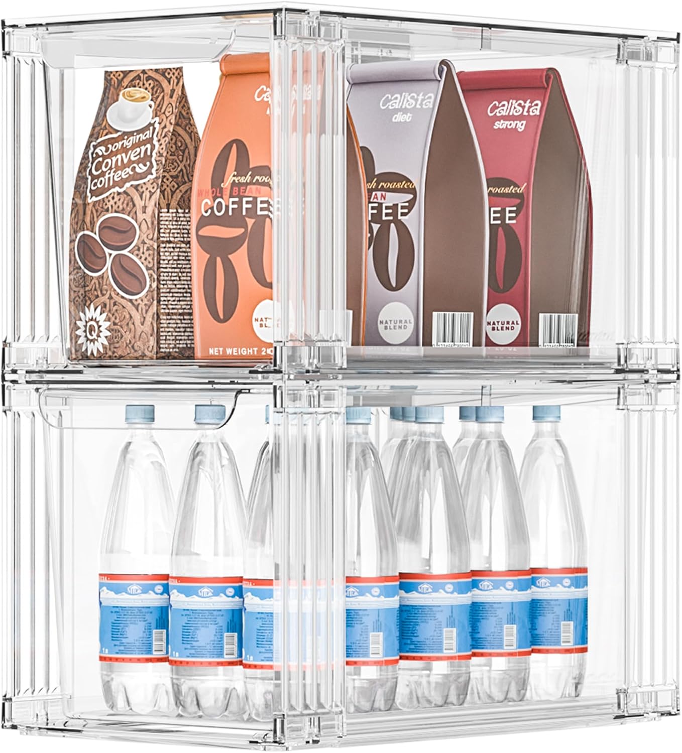 Stackable Kitchen Storage Drawers,Clear with Handles Acrylic Bathroom Makeup Organizer Bins,Easily Assemble,For Vanity, Undersink, Kitchen Cabinet,Pantry Organization and Storage (2Pack)