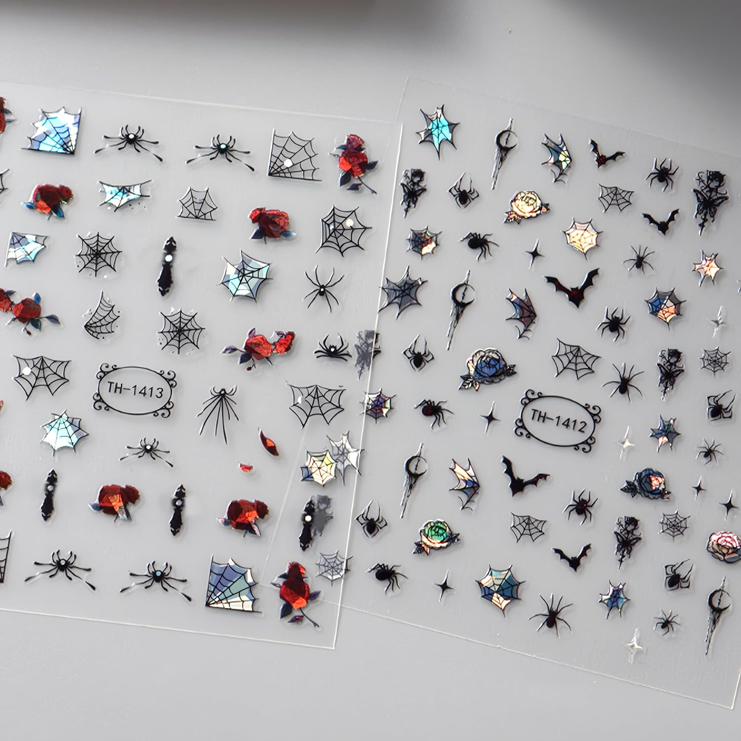 - Halloween Nail Stickers- You will get 6 sheets halloween glitter spider web nail art stickers for acrylic nails supply, many pattern for you to choose, colorful scorpion nail designs, and satisfy your rich imagination of nail DIY