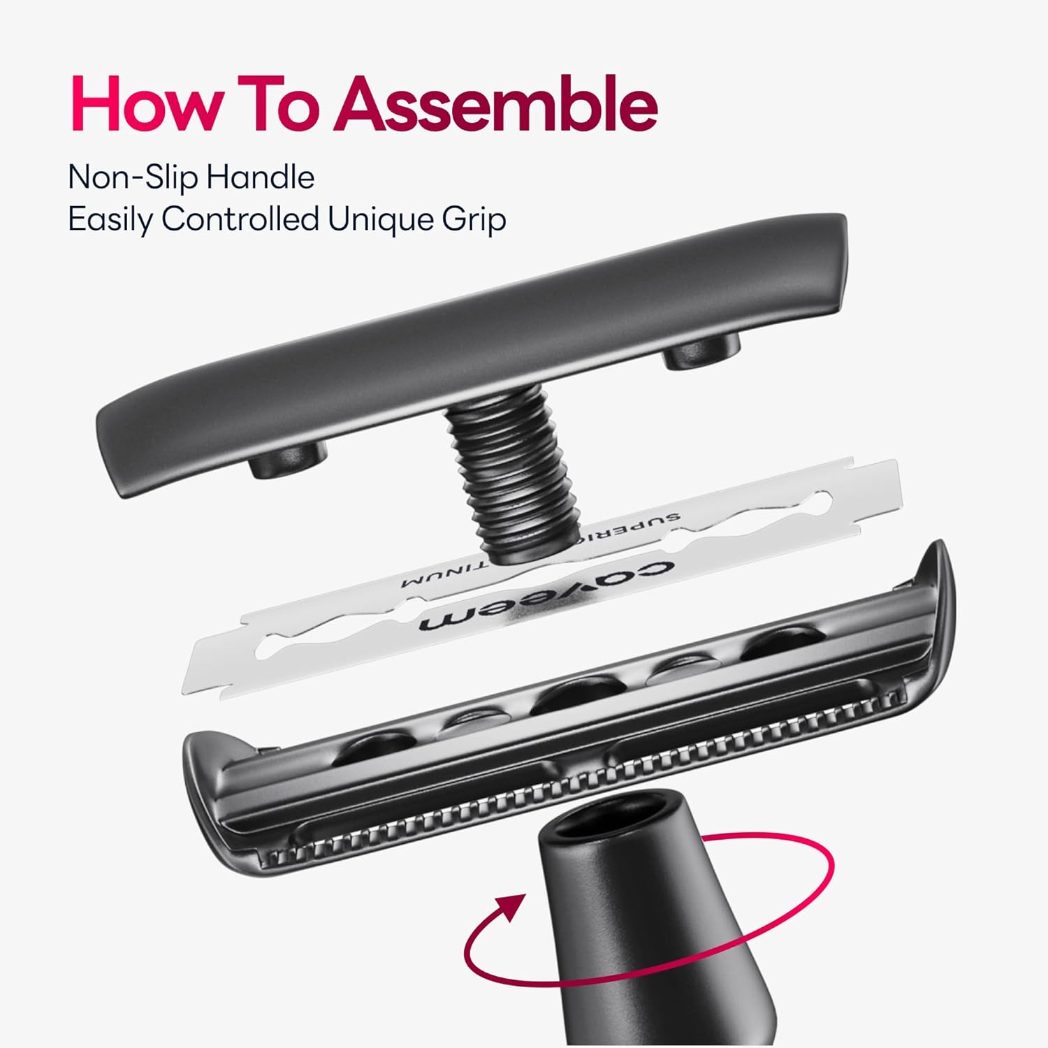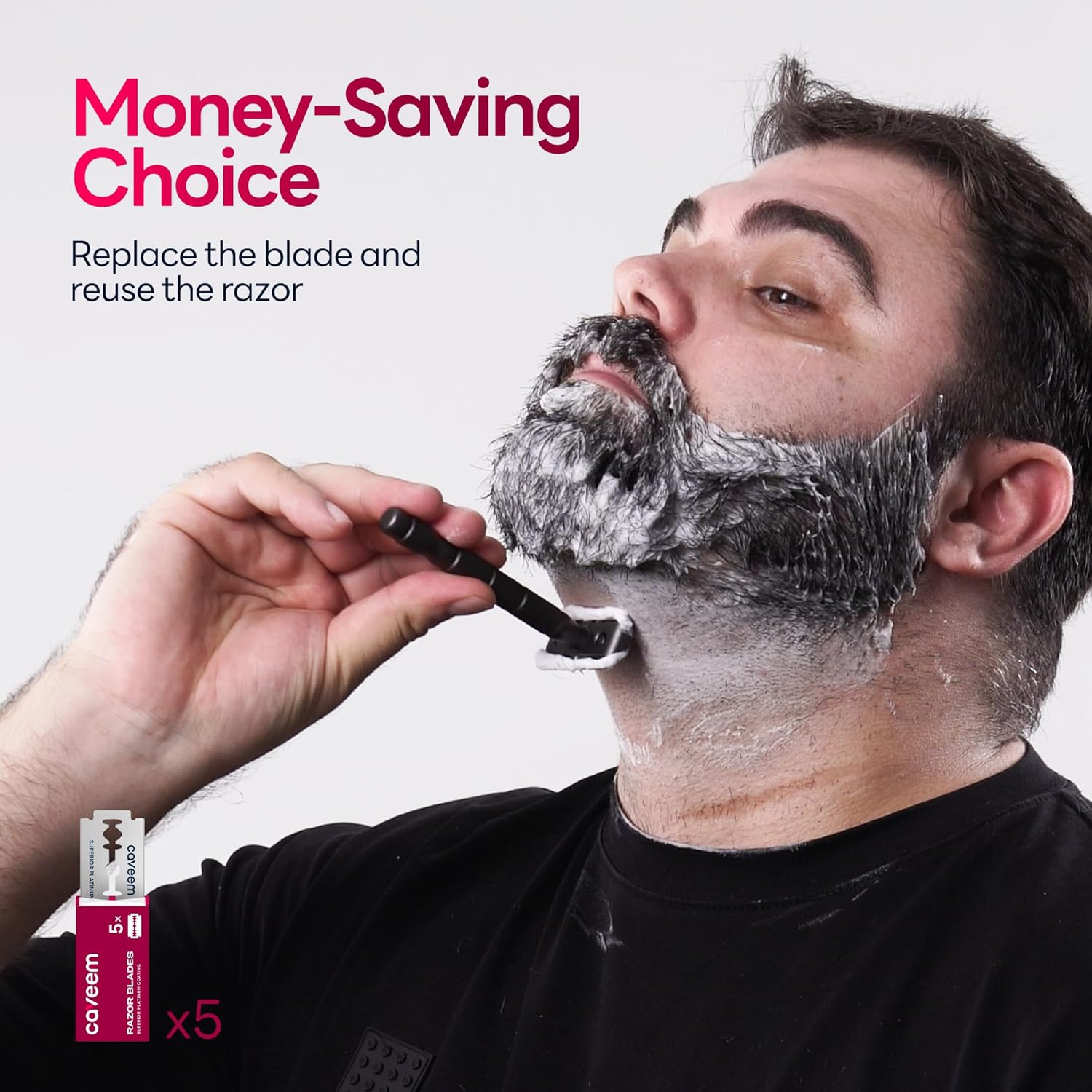 - YOUR SHAVING SKINCARE WITH CAVEEM : Our double-sided razor is crafted from upscale, corrosion-resistant metal, ensuring durability and long-lasting use. The stainless steel blades wrapped in wax paper offer better safety, smoother and convenient shaving