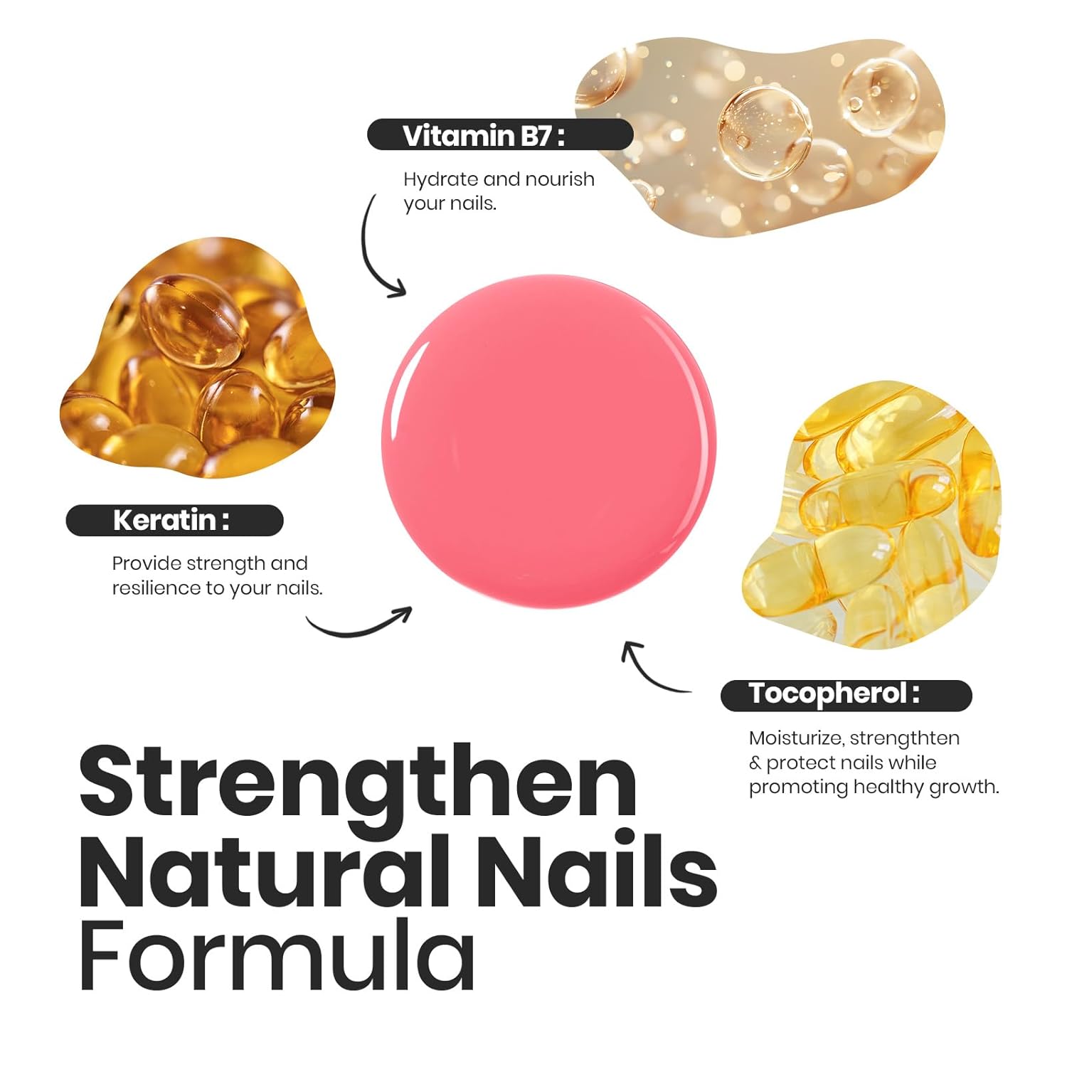 - Nail Care Ingredients: This healthy nail polish formula contains at least 3 ingredients to protect nails, which can strengthen and thicken nails and accelerate nail repair, so that your nails have a beautiful appearance and also make your nails healthier!