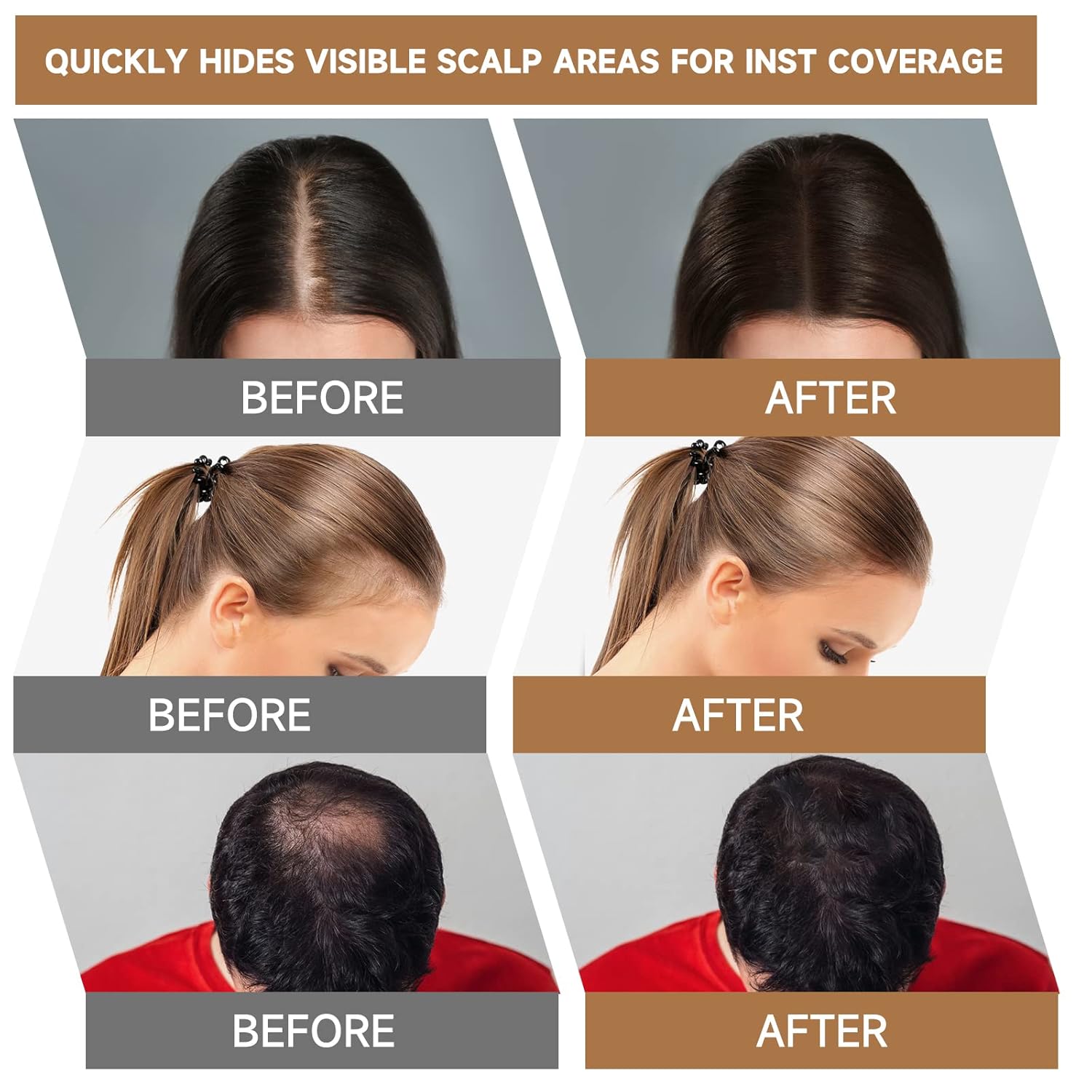 - Multi-Purpose Hairline Powder - Boost the thickness and fullness of your hair with our versatile hairline filler. Itโs perfect for covering gray hair, touching up roots, beard line eyebrow, filling in thinning areas, covering bald spots, and enhancing highlights. Whether traveling, attending business meetings, or going on dates, you can quickly refresh your look and maintain beautiful, voluminous hair anywhere, anytime.