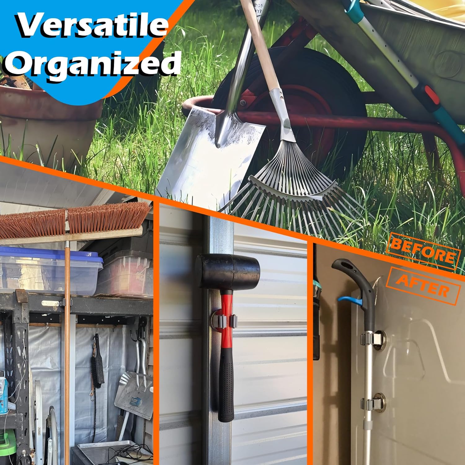 - [Magnetic Mount Broom Holder] Without drilling holes, it can attach to any metallic surface to secure mops, brooms, flashlights, spray cans, markers, and other garage tools in place, and easily move around when using, much handy for daily life