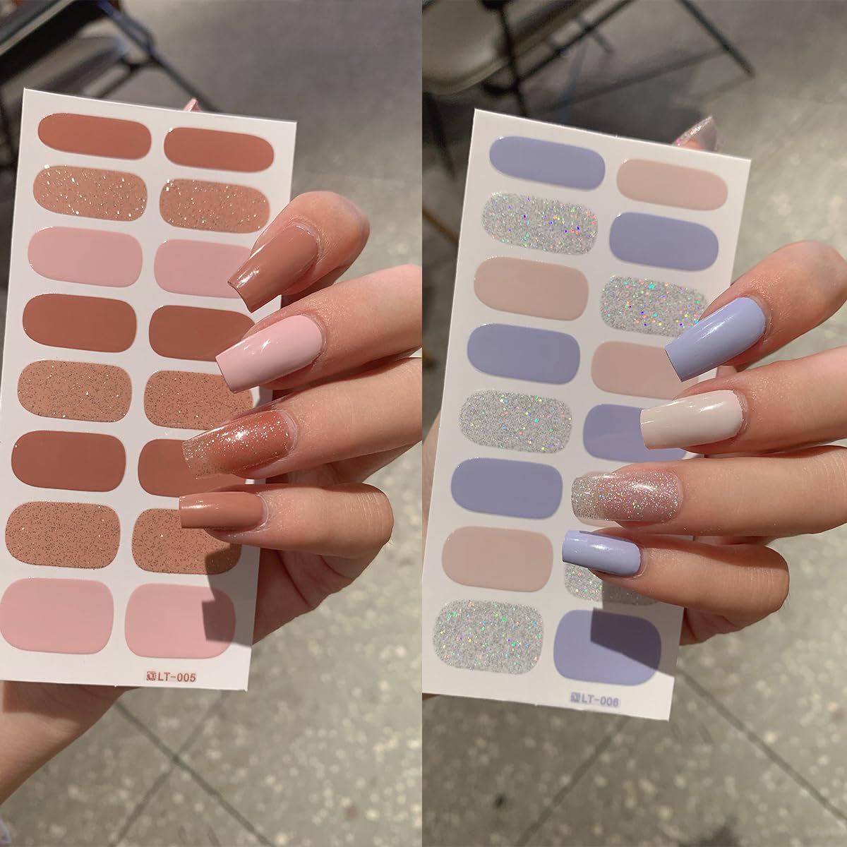- Material: Our glitter gel nail stickers made of resin ink material, can be pasted in your nails easily , also waterproof .Warm tips: Please try not to repeatedly stick on and replace gel nail stickers , which is easy to weaken the sticky effect of nail stickers