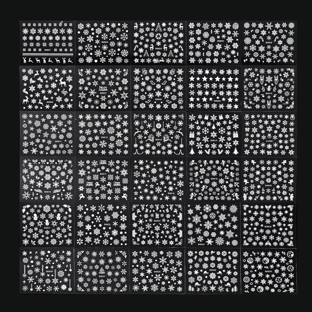 - 【Quantity】You will get 30 sheets 3D white Christmas snowflake nail art decals, each paper measures 2 x 2.4 inches(5 x 6 cm). Contains a variety of Xmas snow patterns, Snowflakes of various shapes nail stickers are perfect for matching other Xmas nail art.