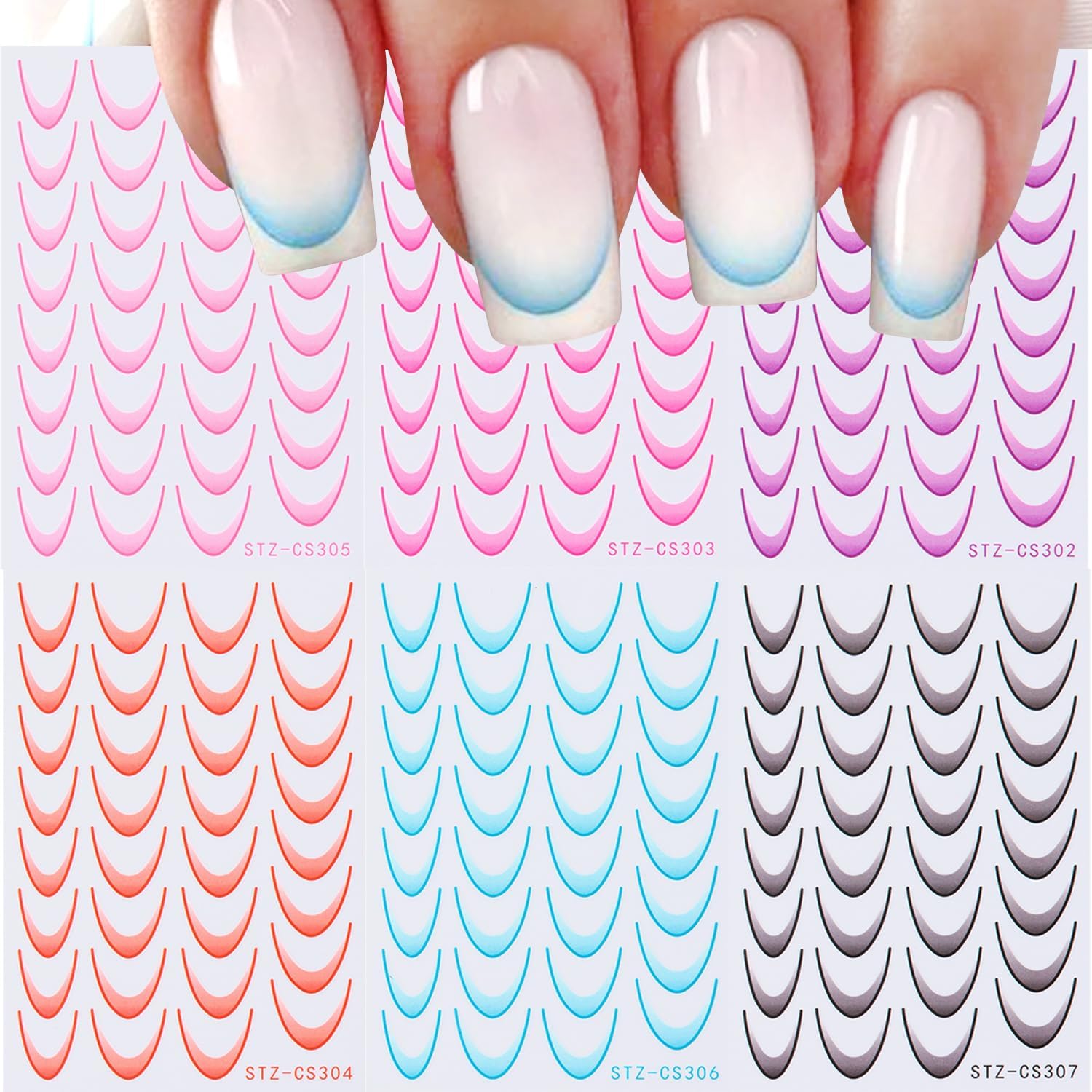 - Package Included:You will get 6 sheets french tip nail stickers, unique three-dimensional effect, will not fade, more realistic than ordinary stickers, you can well create a different nail effect