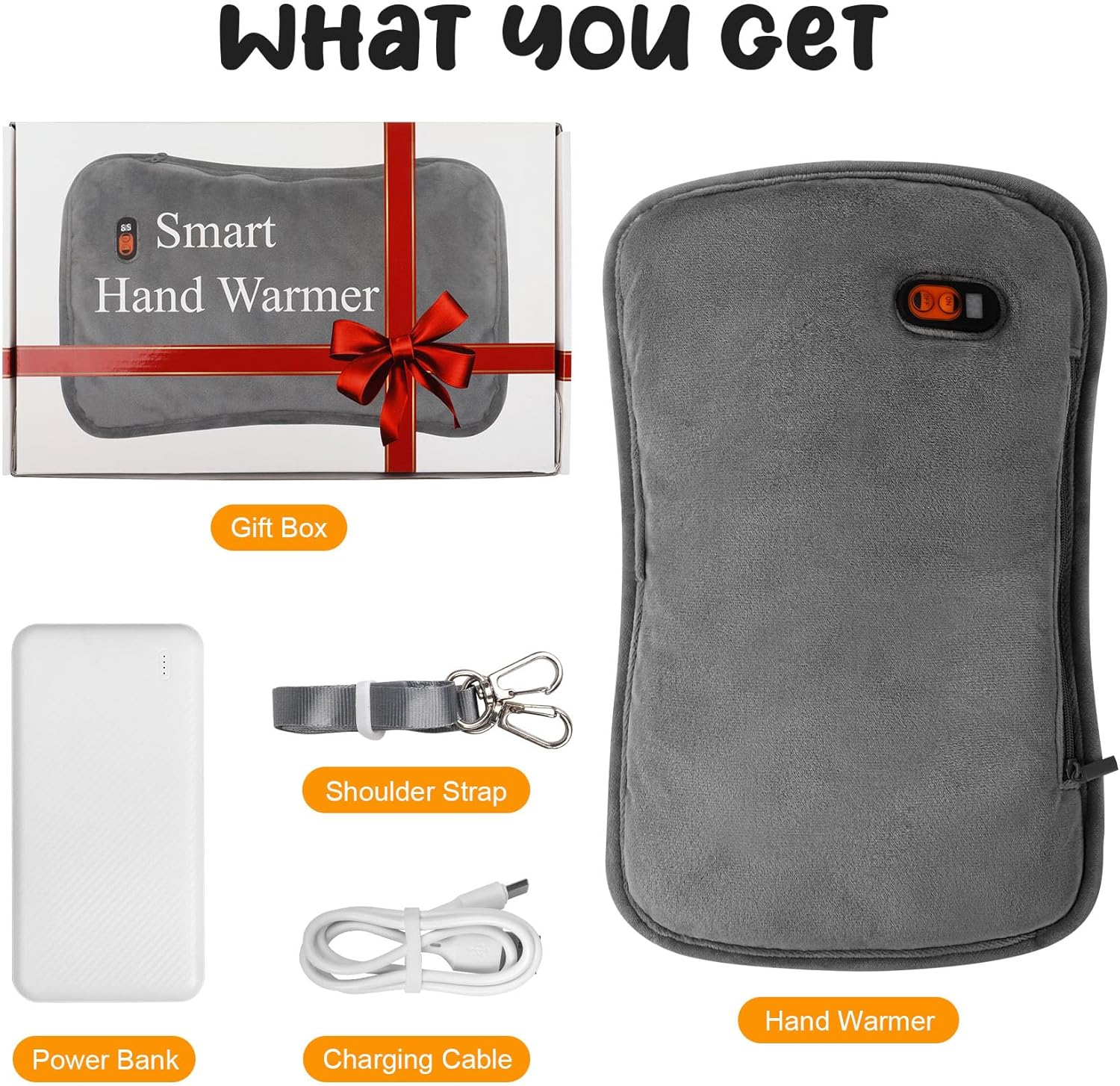 - Portable Hand Warmer: Electric hand warmers portable equipped with a shoulder strap and a pocket design, the hand warmers rechargeable are easy to carry anywhere, suitable for office, outdoor and leisure activities