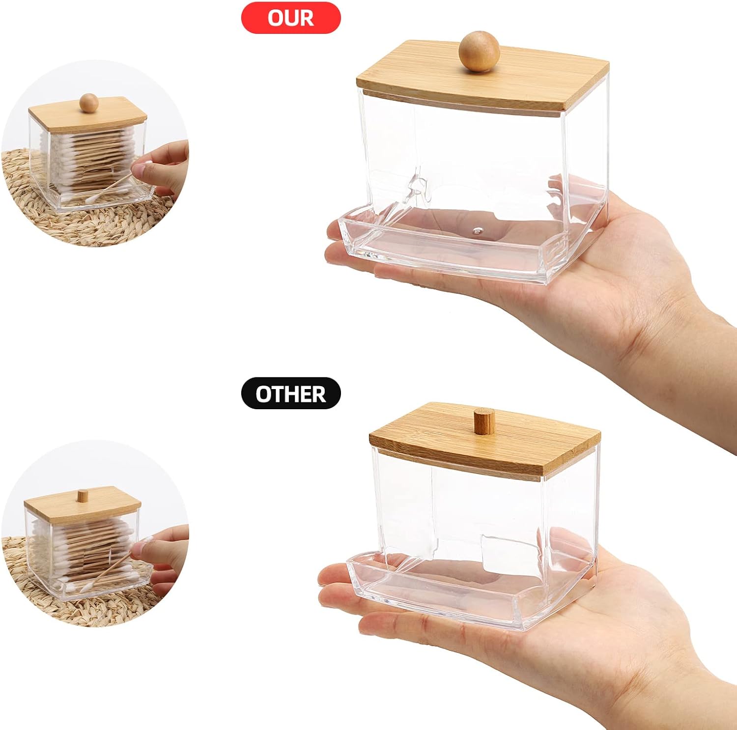 - Bigger than Others-Compare with others with same shape our organizer are bigger. Putting&Picking cotton swabs more easier