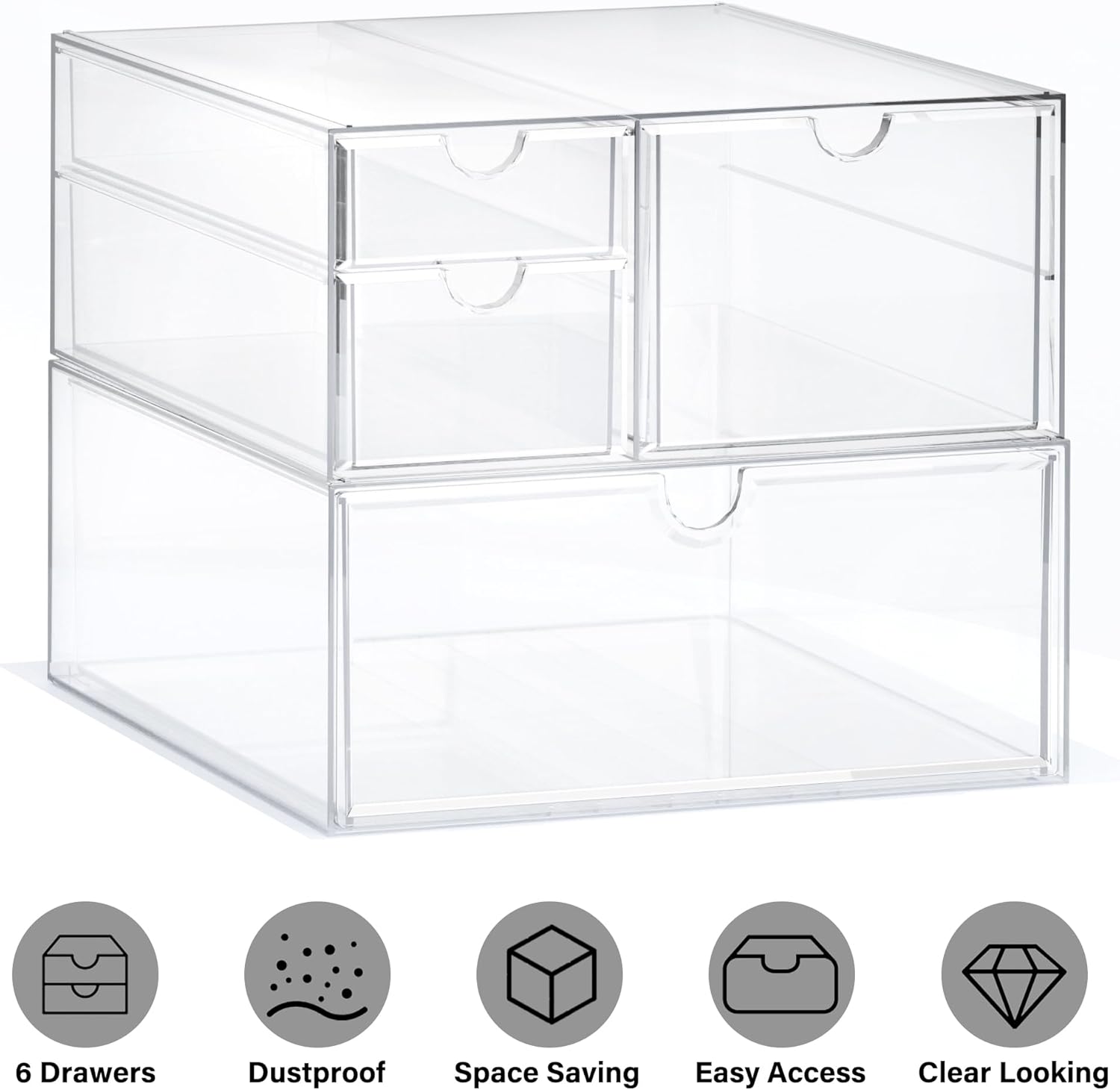 - Unique Design: The acrylic makeup organizer drawer allows for easy identification of contents. Made from durable, unbreakable plastic, they are equipped with silicone anti-slip pads on the bottom to prevent movement when the drawer organizer storage is opened or closed, ensuring a steady and reliable storage solution.