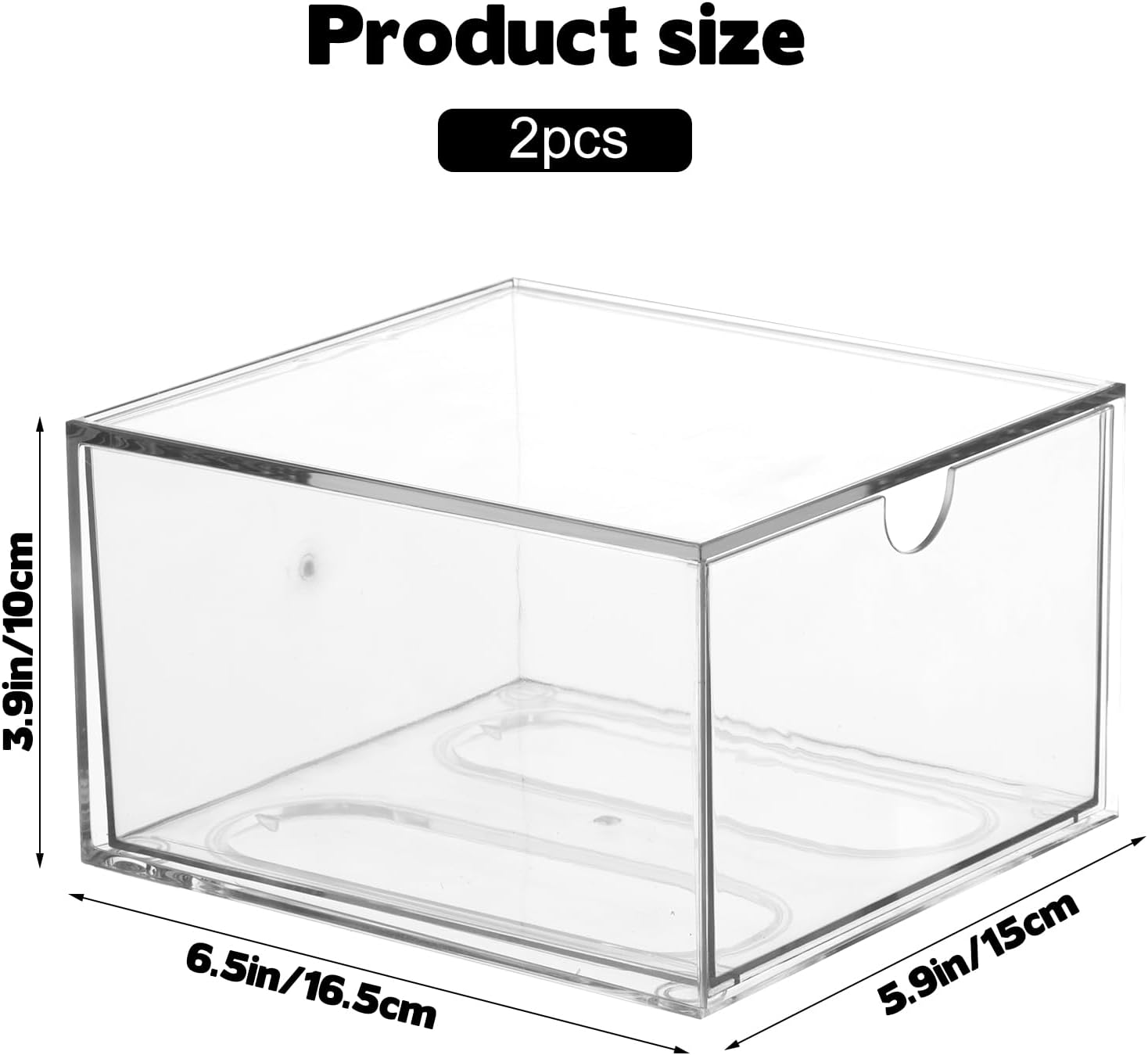 Rainmae 2 Pack Disposable Face Towel Holder, Face Towel Storage Box, Stackable Clear Makeup Organizer with Drawer for Clean Skin Club Face XL Towels Holder for Vanity Bathroom and Makeup Organization