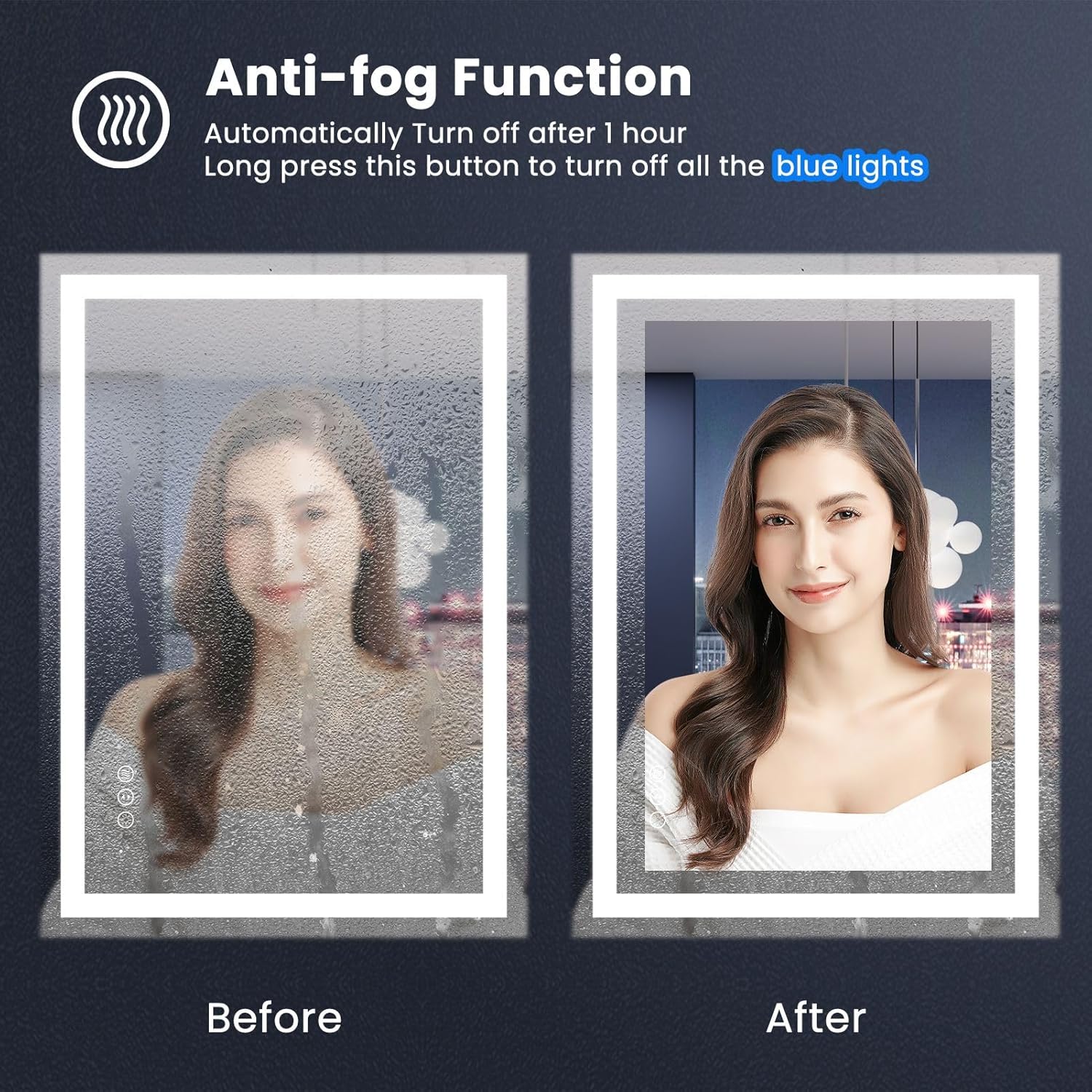 - [No more foggy mirrors! ] Amorho mirror supports fog removal function, which can quickly clear the fog of the mirror surface in 1 minute. And shut off automatically after one hour