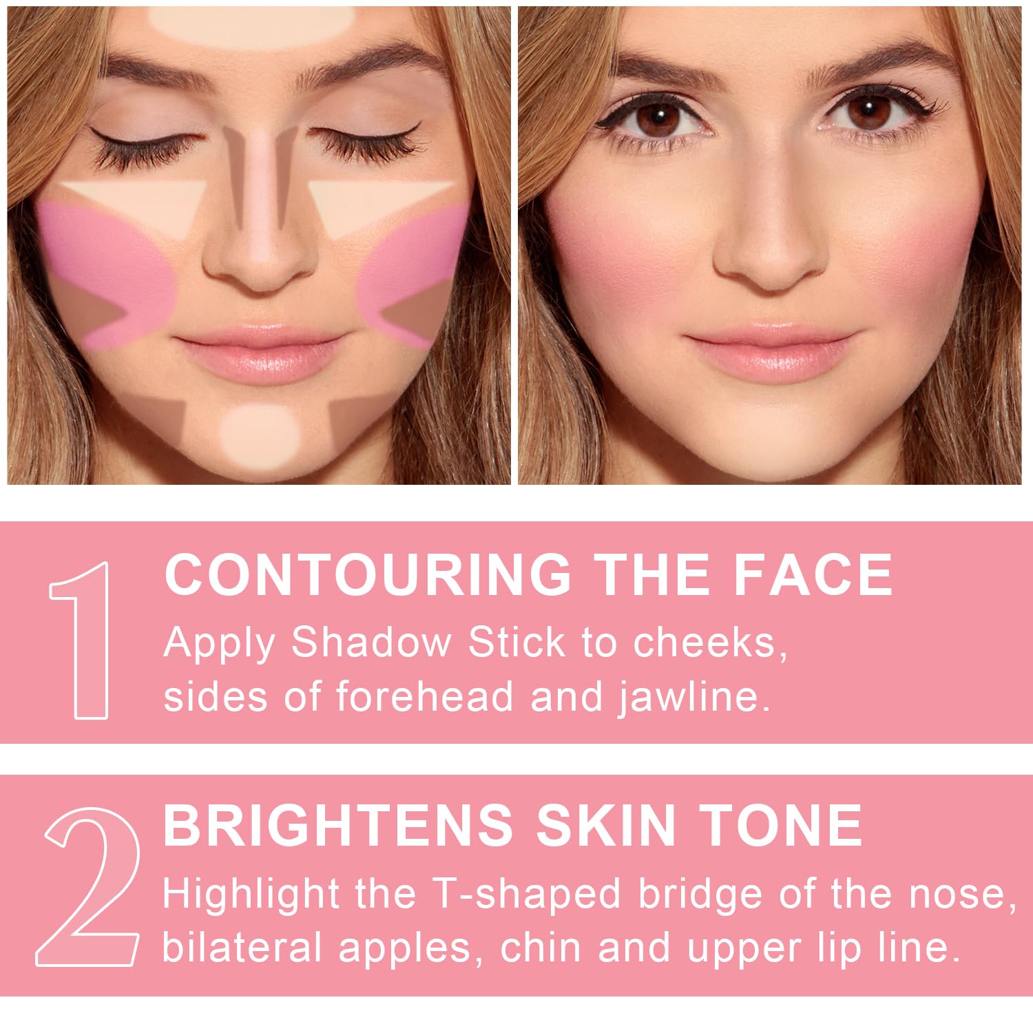 - 【Double-End Contour Stick Makeup Kit】This trio contour stick makeup kit has shades that include blush, bronzer contour and highlighter. This kit is easy to sculpt your face and add a warm, healthy, glowing natural look complexion to your skin.