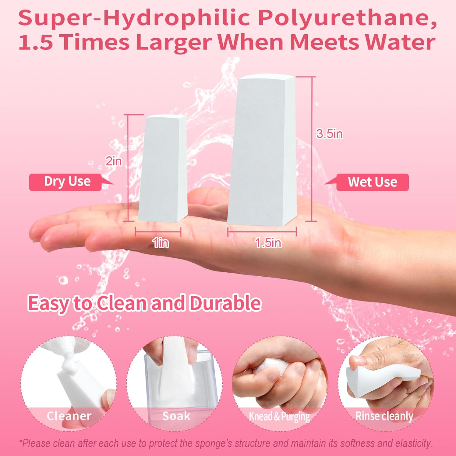 - New and Perfect Version: Our foundation sponge is made of hydrophilic polyurethane, which is soft, highly elastic, thicker, and easier to grip for makeup application. With an upgraded cutting technique, it tears apart easily for daily use, featuring a smooth surface that wonโt feel rough or fragile, and is free from irritating odors. It has two beautiful protective pouches to protect it from damage and dirt.