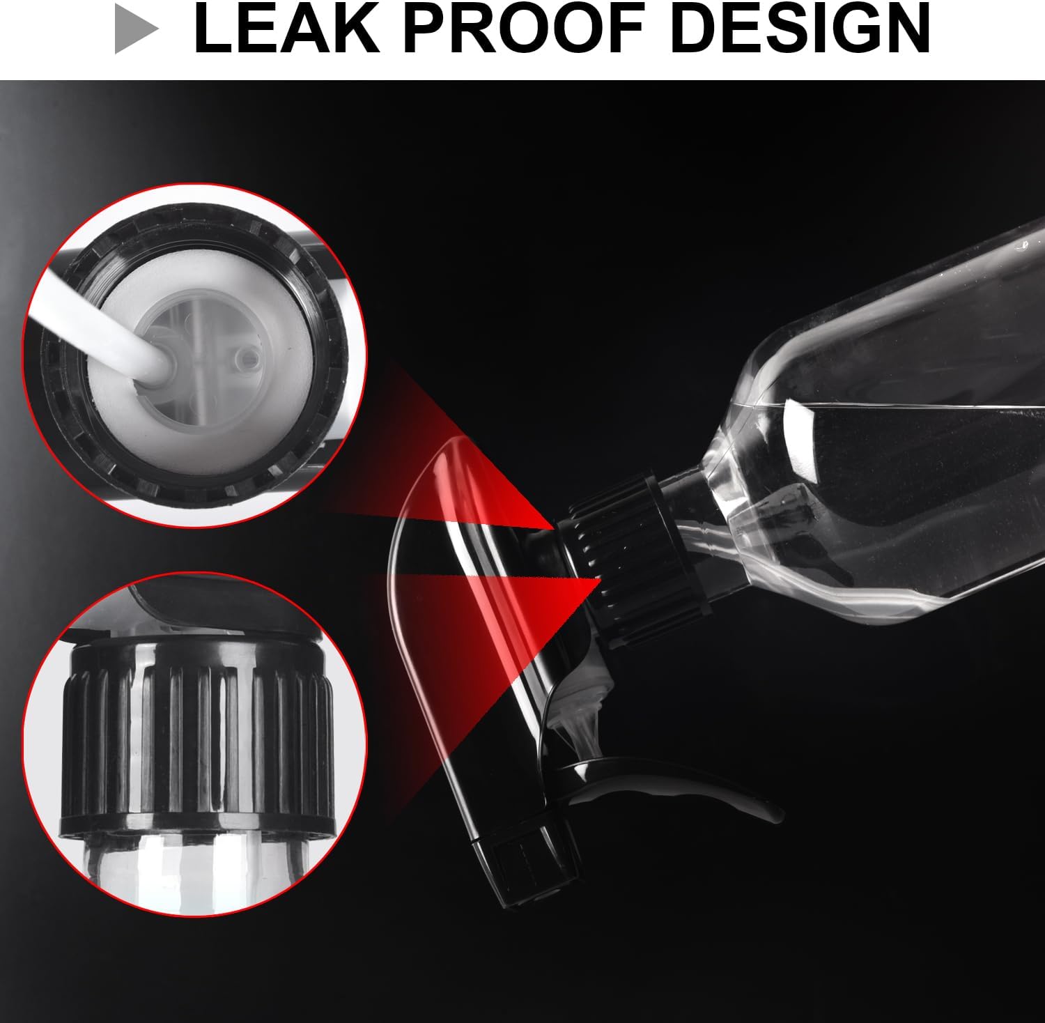 - LEAK & CLOG PROOF: Our spray bottles were designed with a durably constructed polypropylene spray head, supported by a rustproof plastic spring and precision valve and piston for an easy leak & clog-free experience every single time.