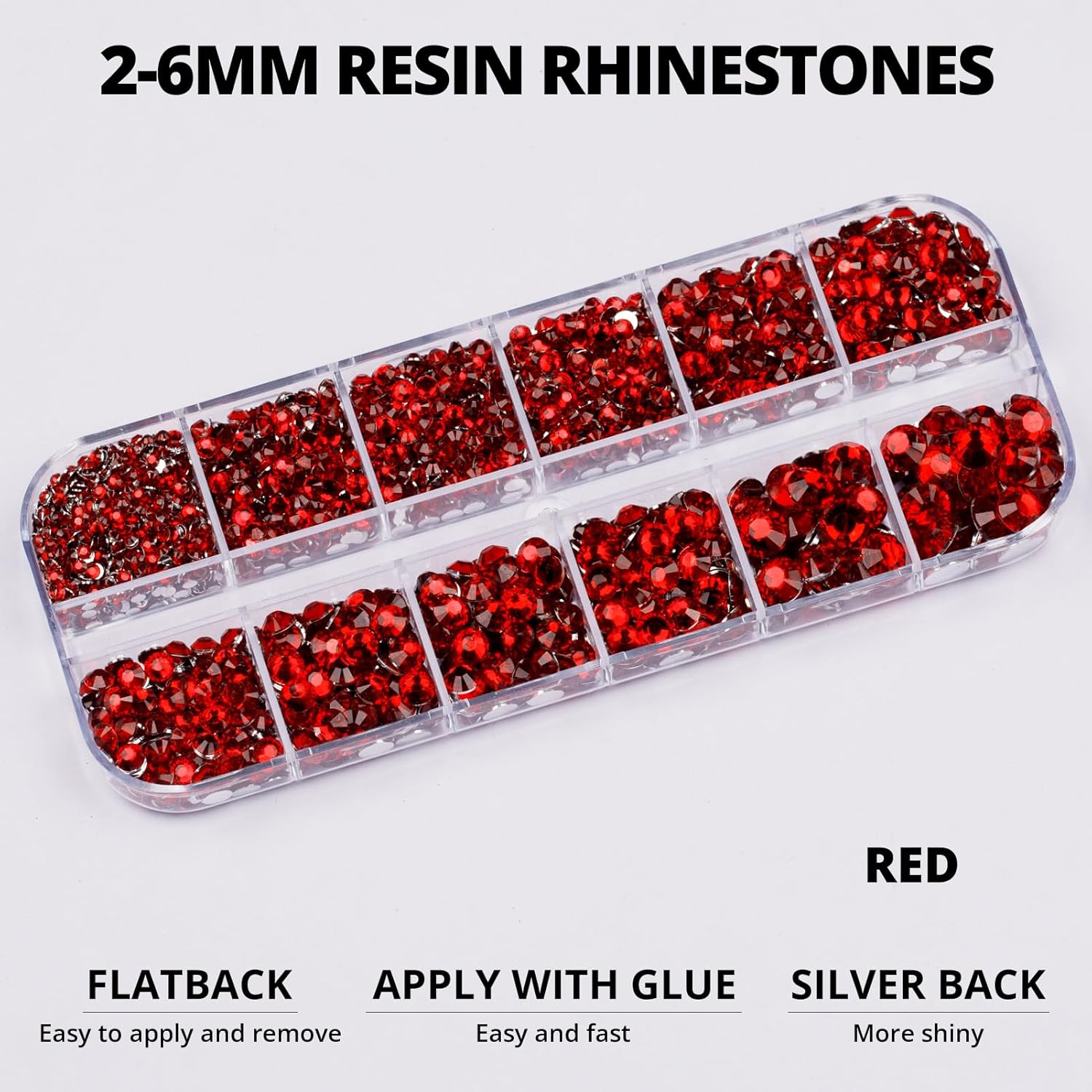 6000Pcs Red Rhinestones for Crafting Bedazzling with b-7000 Jewelry Glue, Resin Flatback Crystals Diamonds for Crafts Clothing Clothes Shoes Decoration, Flat Back Gems Different Sizes