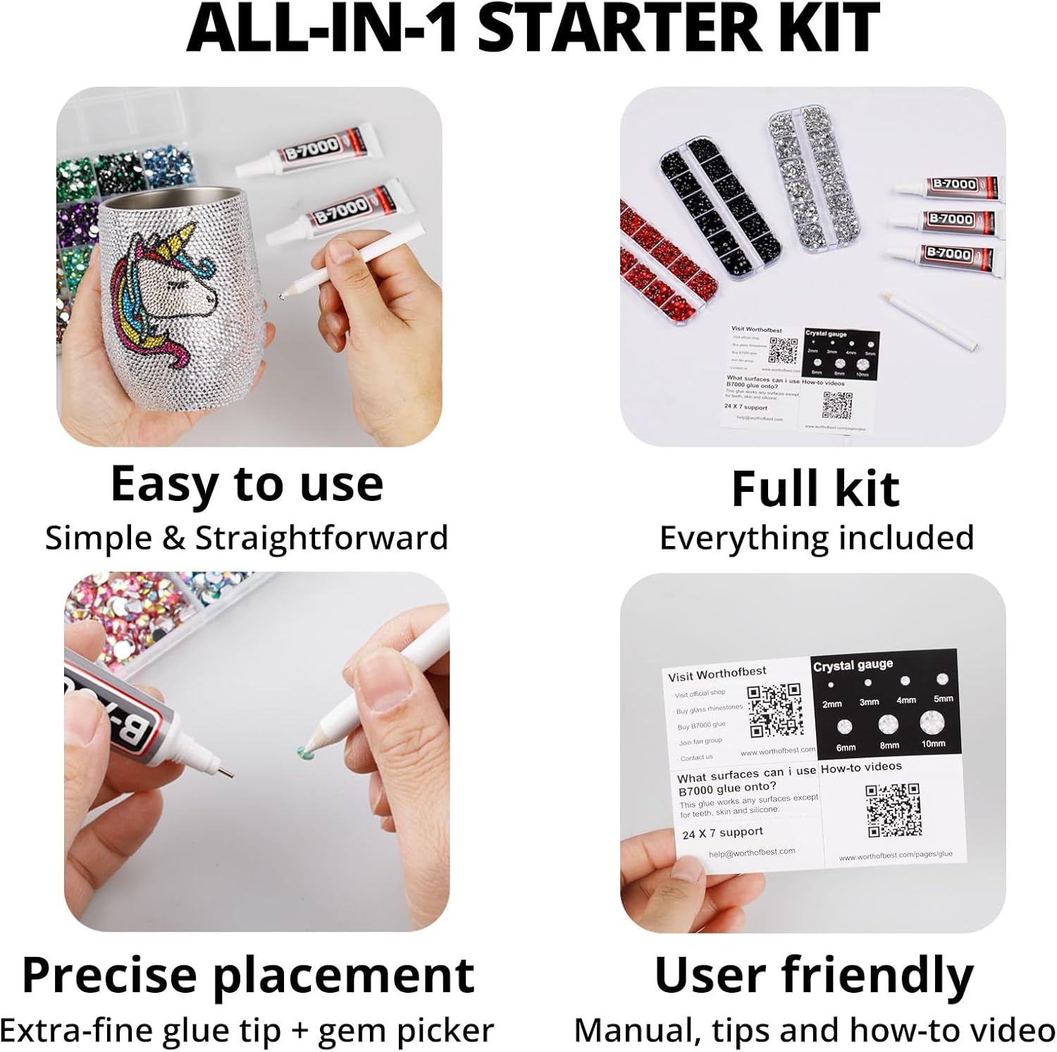 - B7000 Clear Glue for Gemstones -- B7000 glue has strong adhesion and dries clear, waterproof when dried, non-toxic and harmless to the skin. The glue has a precision needle for easy application, they can be applied precisely