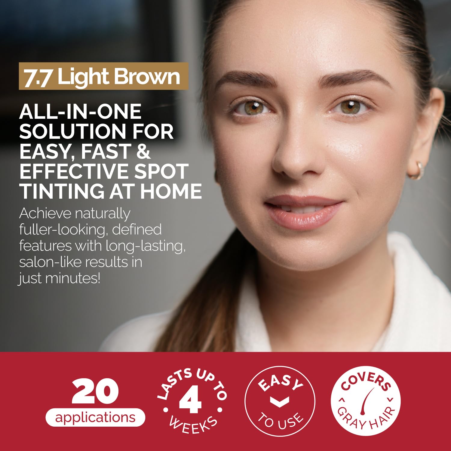 RB RENATA BEAUTY Tint Kit β Cream Hair Dye Kit with Developer and Application Brush for Spot Coloring - Covers Gray Hairs, Smudge-Proof, Long-Lasting Up to 4 Weeks, 20 Applications [Light Brown]