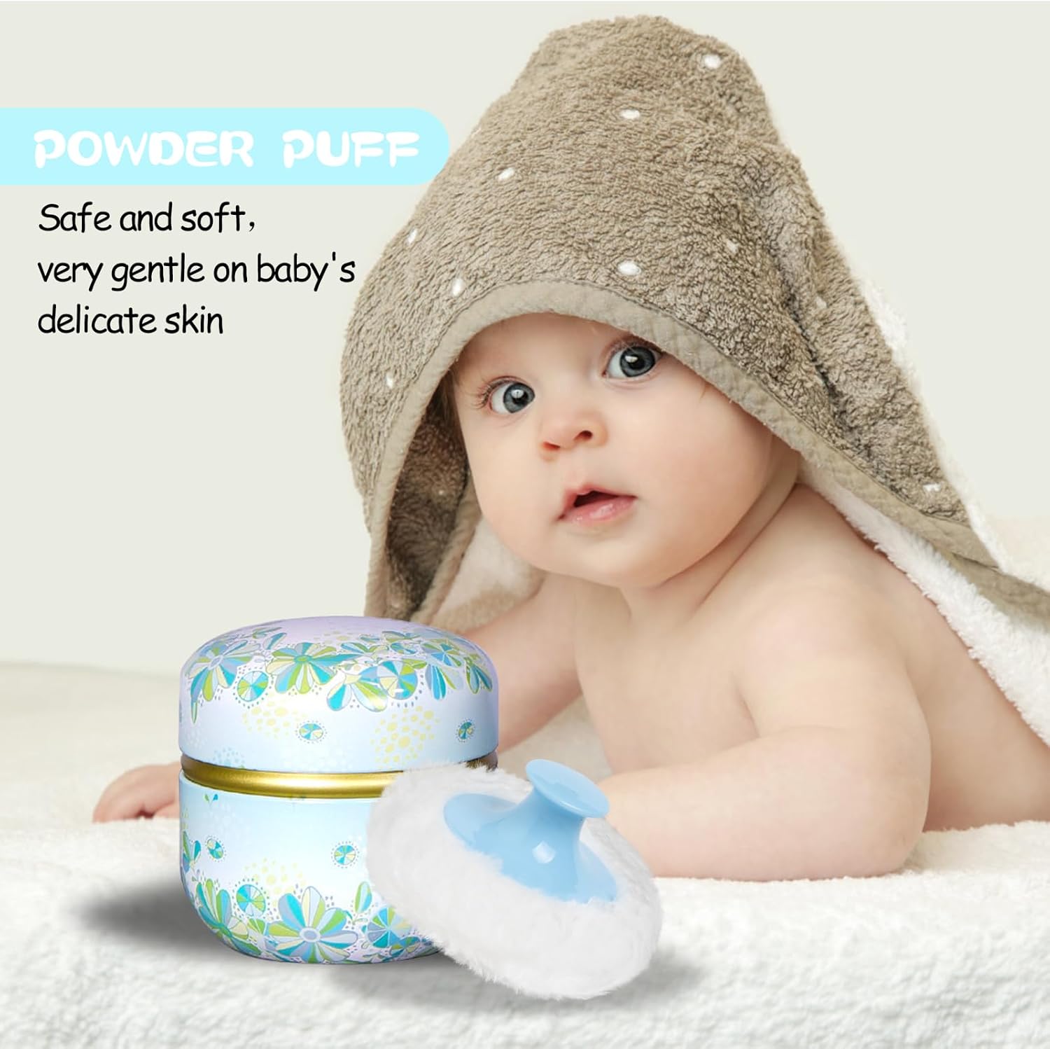 - The powder puff is soft and comfortable, made of fine and smooth artificial wool, which is easy to dry, does not deform, is safe and reliable, and does not harm the skin of children. Compared to ordinary powder puffs, our powder puff is equipped with a handle that helps you apply the powder evenly and smoothly on the body.WIDE RANGE OF USE: powder puff apply to loose powder, foundation powder, diaper powder, talcum powder, deodorant powder.