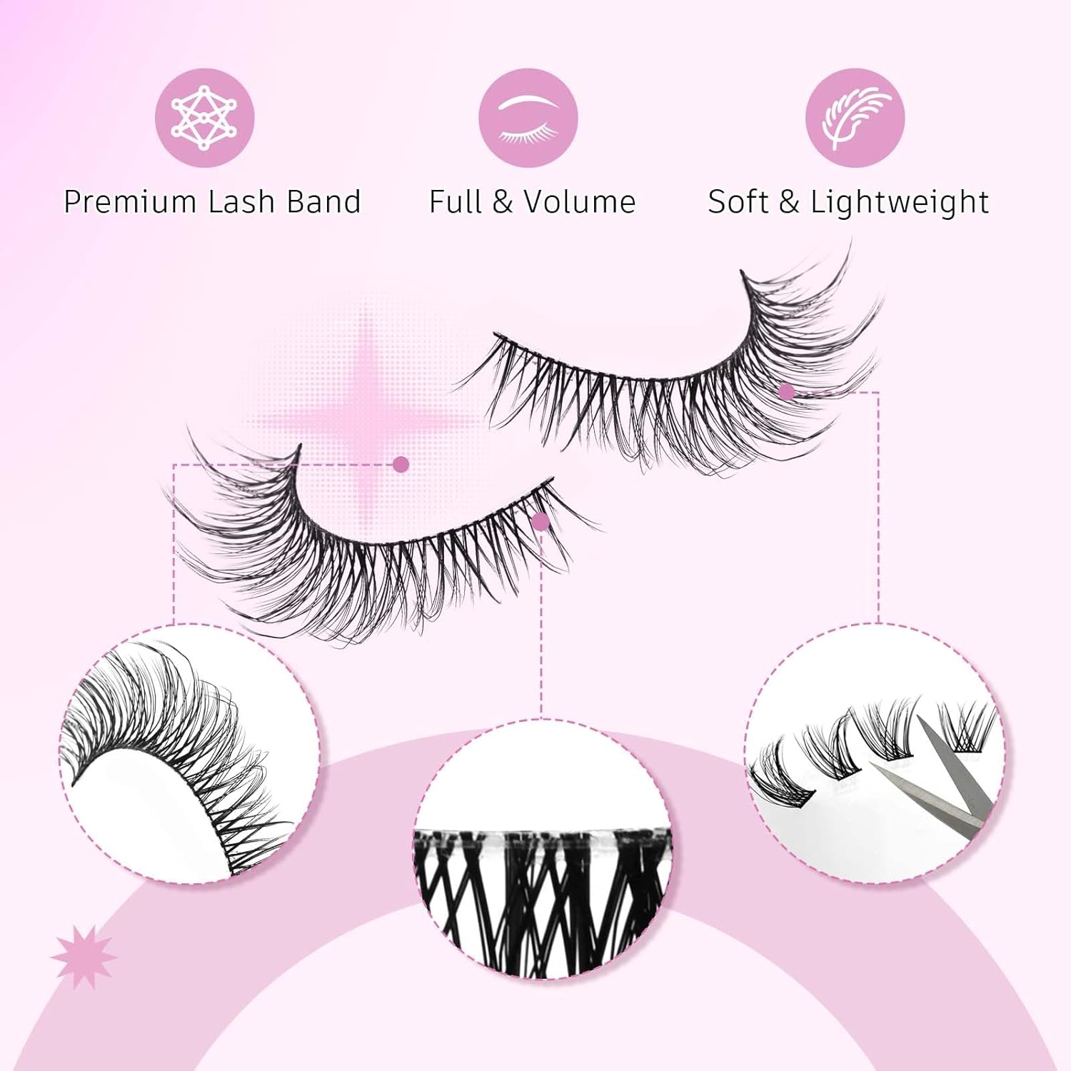 - 【THIN BAND DESIGN】: Specially designed thin lash band. Not only does it make your eyes look natural when you wear fake lashes, but it also puts less pressure on your eyelids and improves your wearing comfort.