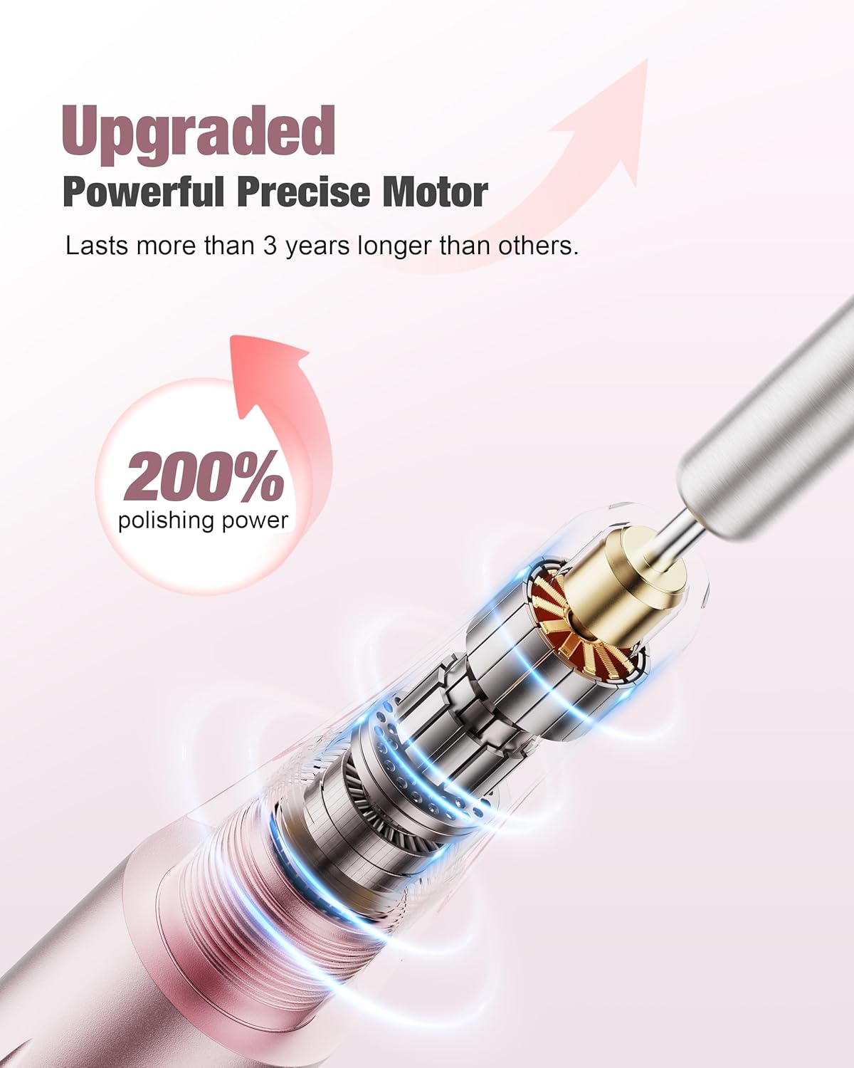 - This nail drill is built to last, with an upgraded motor and overload protection mechanism that extends its service life. Plus, its spring structure makes it quiet and low-vibration for a more pleasant experience