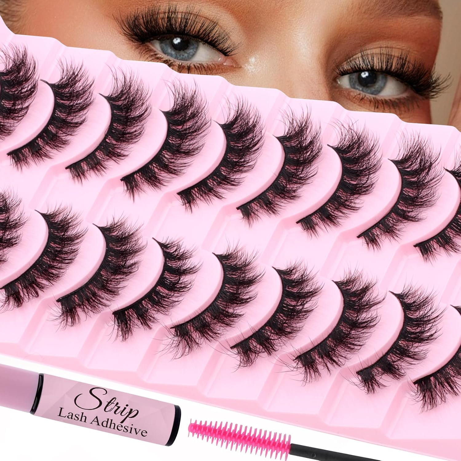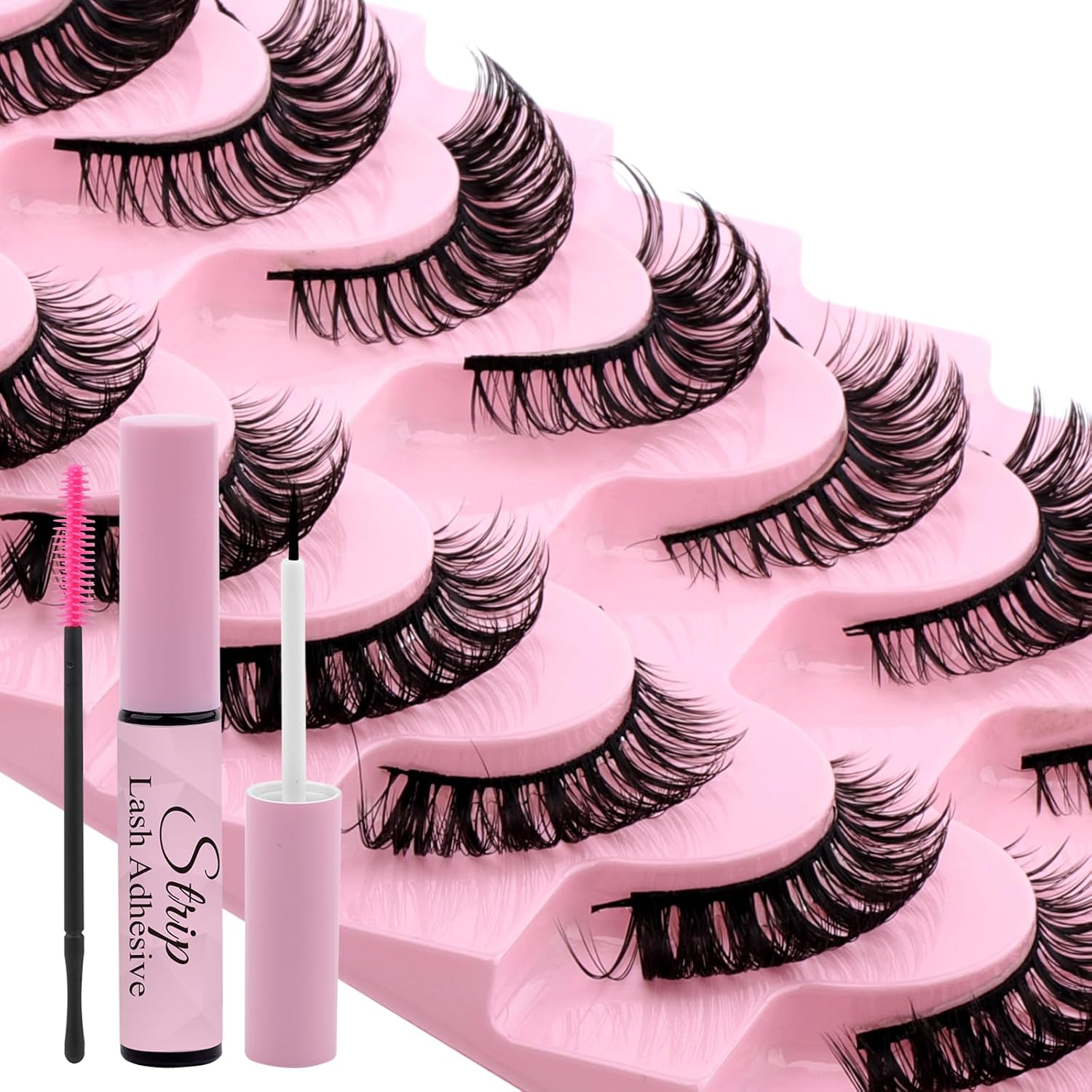 Strip Lash with Glue for DIY Lash-users: 10 Pairs, DIY, Natural Look, Fluffy, Manga, Wispy, Waterproof, Anime, Cat Eye, D Curl, XH42-08