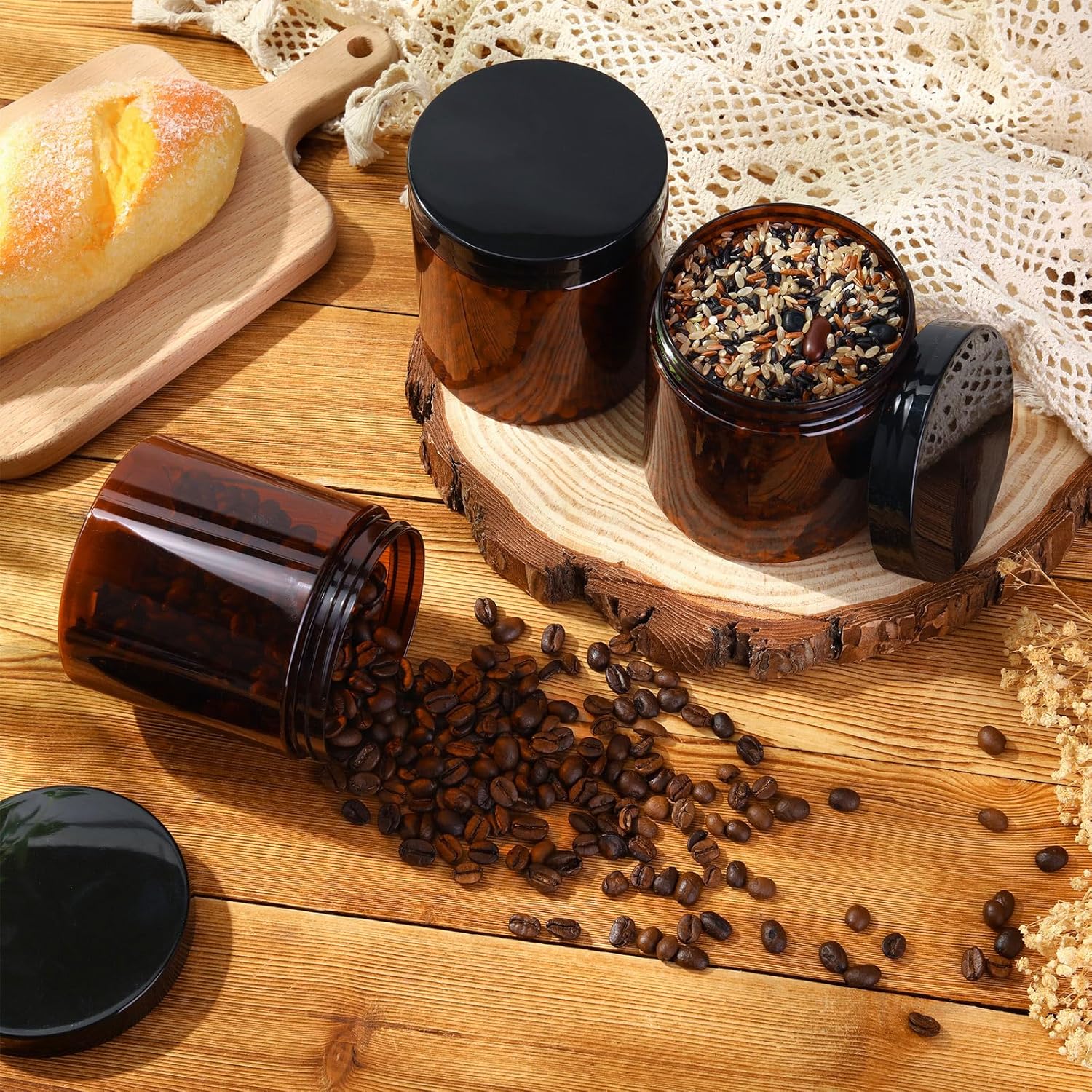 Patelai 4 Pieces Round Wide-mouth Leak Proof Plastic Container Jars with Lids for Travel Storage Makeup Beauty Products Face Creams Oils Salves Ointments DIY Making(16 Ounce,Amber)
