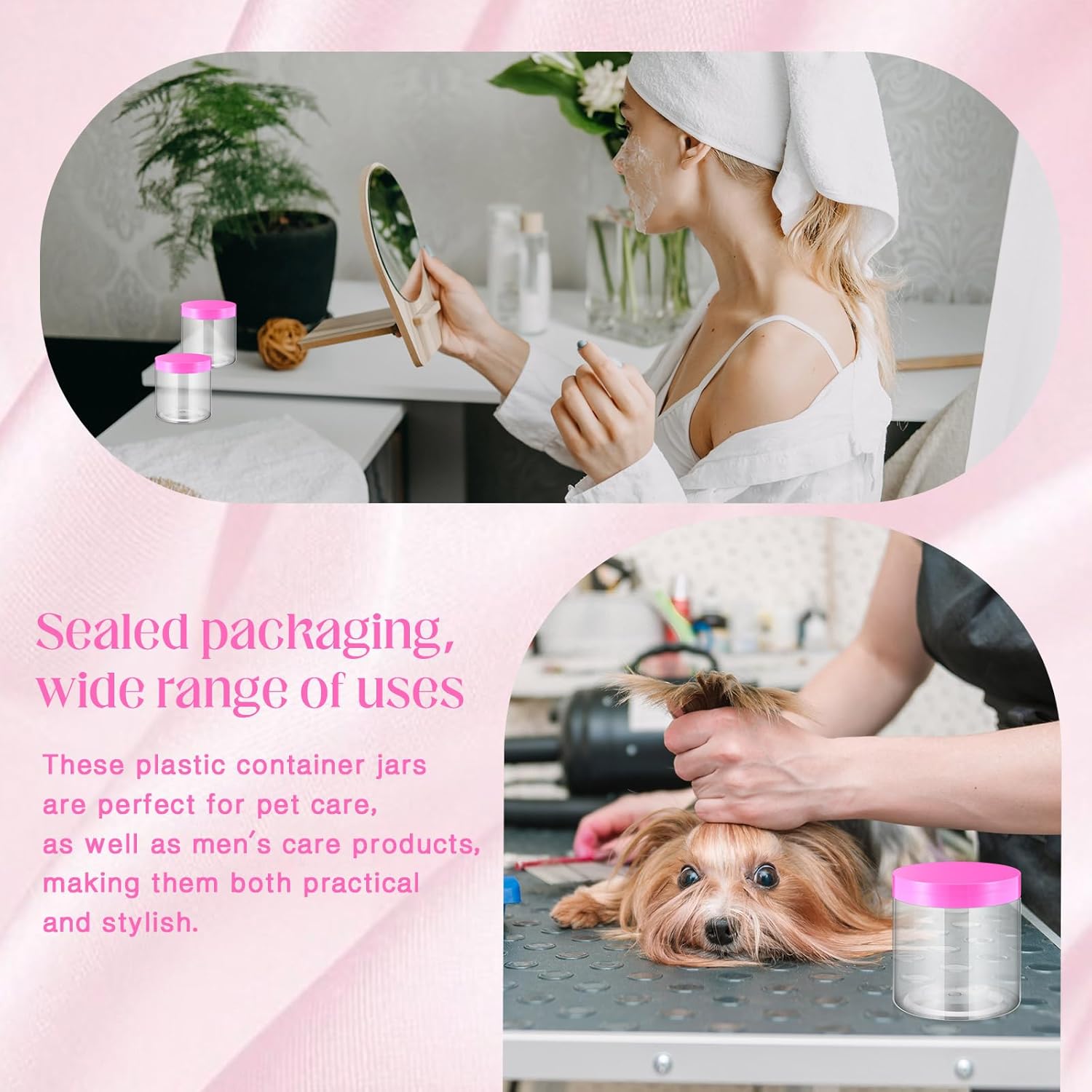 - What You Receive: there are 4 pieces plastic jars with pink screw-on lids; They are durable and refillable, measuring about 16 oz in capacity