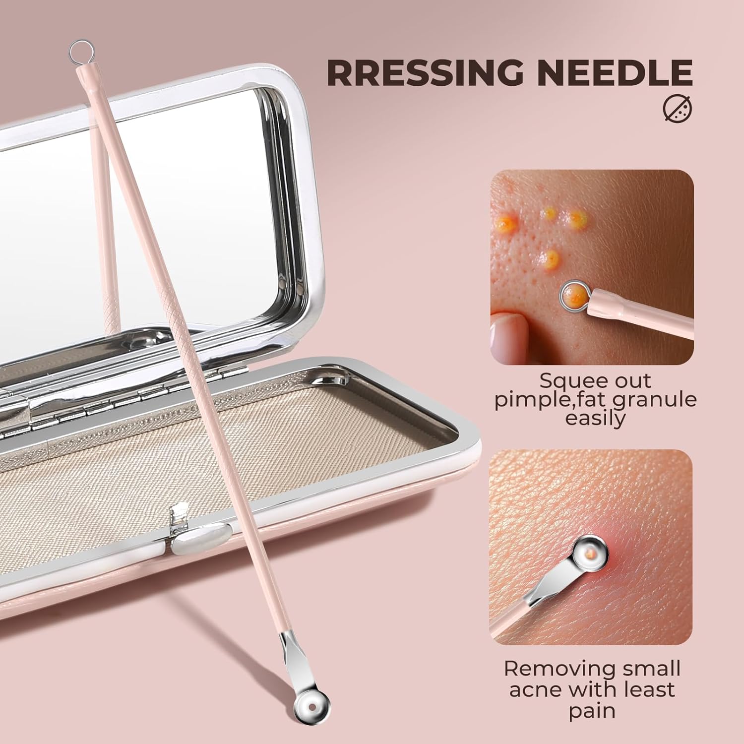 - 7 IN 1,HAVE EVERYTHTING YOU NEED: This 7-Piece Tool Set is a very nice set of tools designed to help deal with blemishes of all kinds (blackheads, acne, ingrown hairs, etc.). Properly using this set will be much better than squeezing blemishes and has a lesser chance of scarring.
