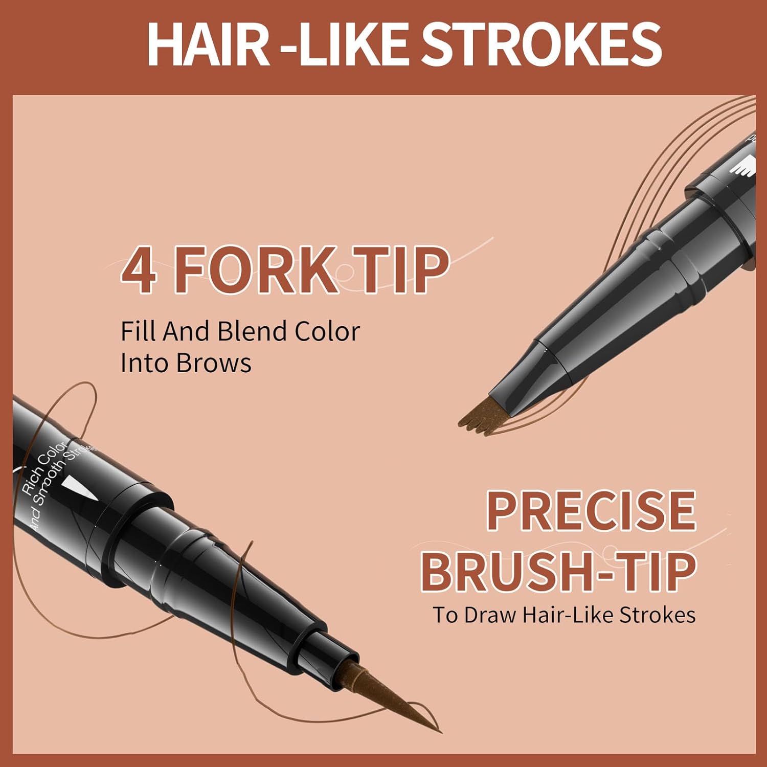 4-Fork Tip Microblading Eyebrow Pen - 2-in-1 Waterproof Eyebrow Pencil, Long-Lasting Natural Hair-Like Brows, Smudge-Proof & Easy to Use (02#Dark Brown)