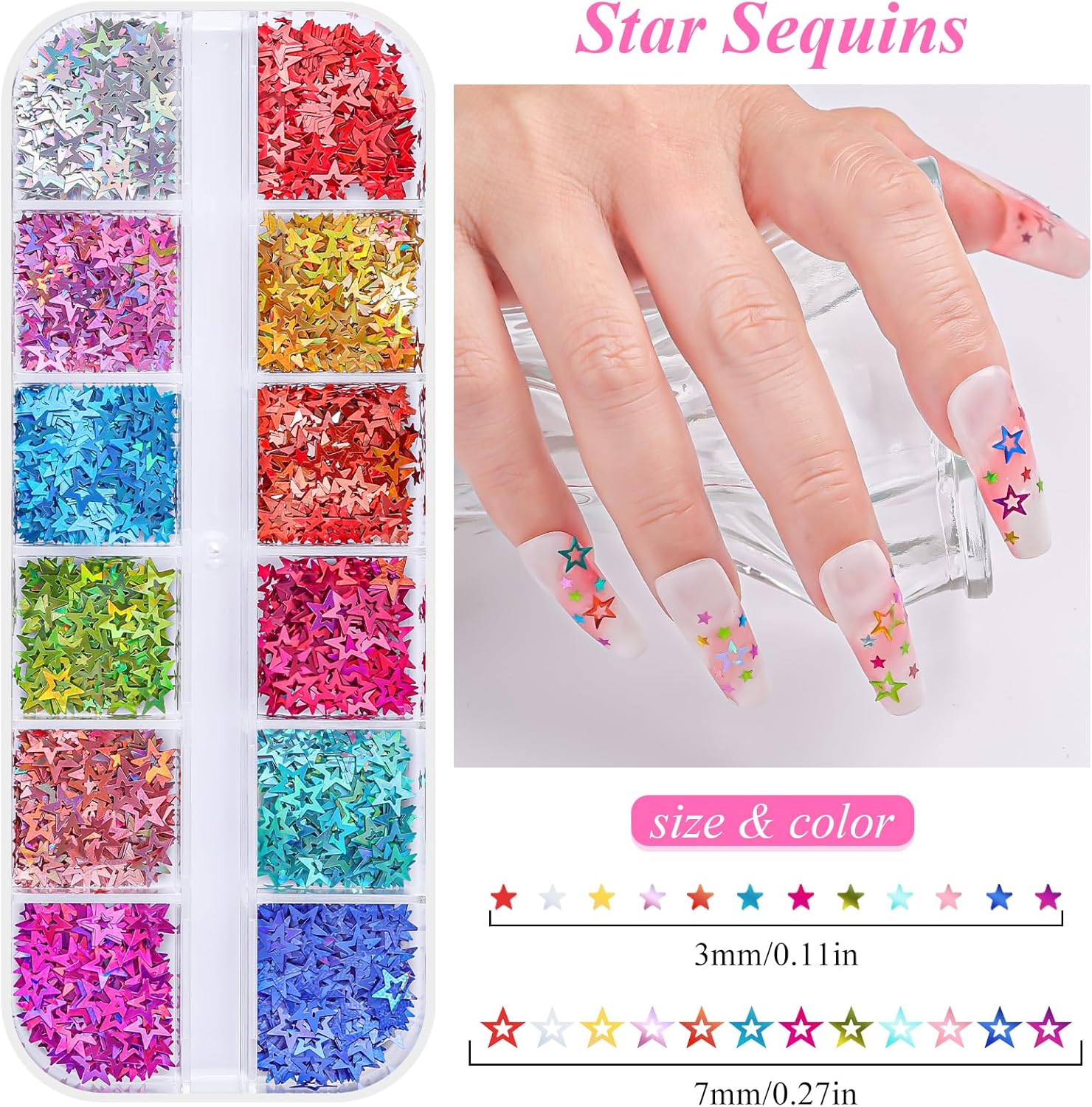 - Nail Sequins Decoration Kit: You'll get 5 boxes of mixed-shaped sequins (butterflies, hearts, stars, moons, flowers, diamonds,fruit,etc.), 1 pair of precision tweezers, and 1 cs of dual-end nail brush/dotting pen—everything you need for stunning nail art!