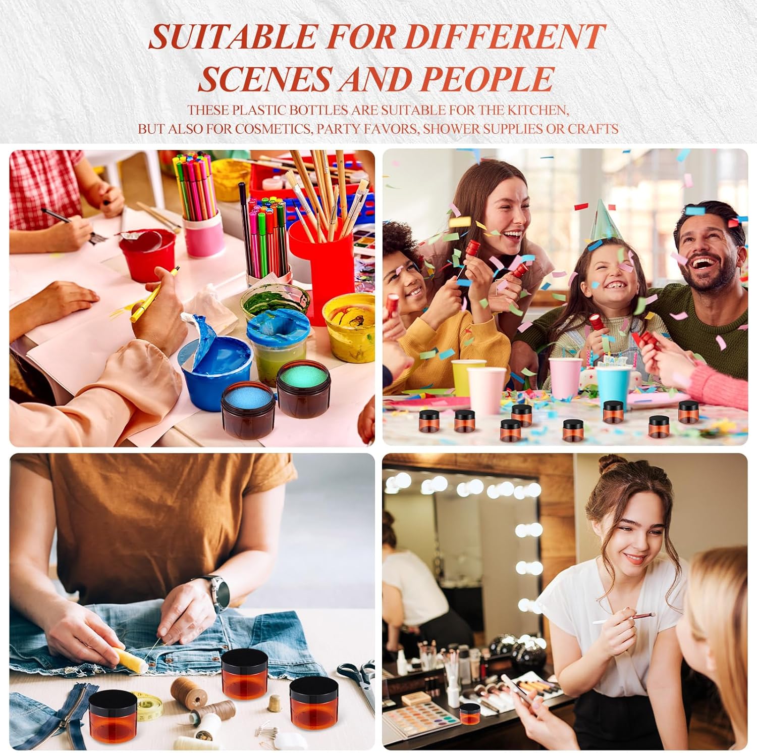 - Multi-functional Container: this clear plastic round storage jar can be applied to fill solid, liquid and paste-like products; You can use it in kitchen to store and classify kitchen condiments and in life to store body lotion, moisturizing cream, cream, etc